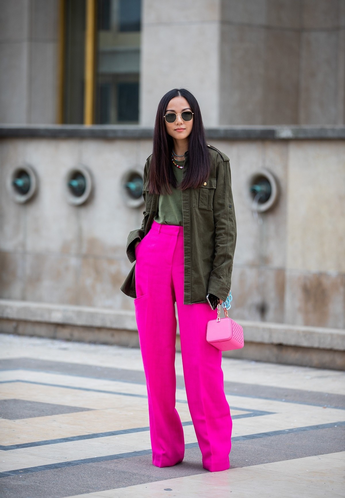 Образ с брюками цвета фуксия