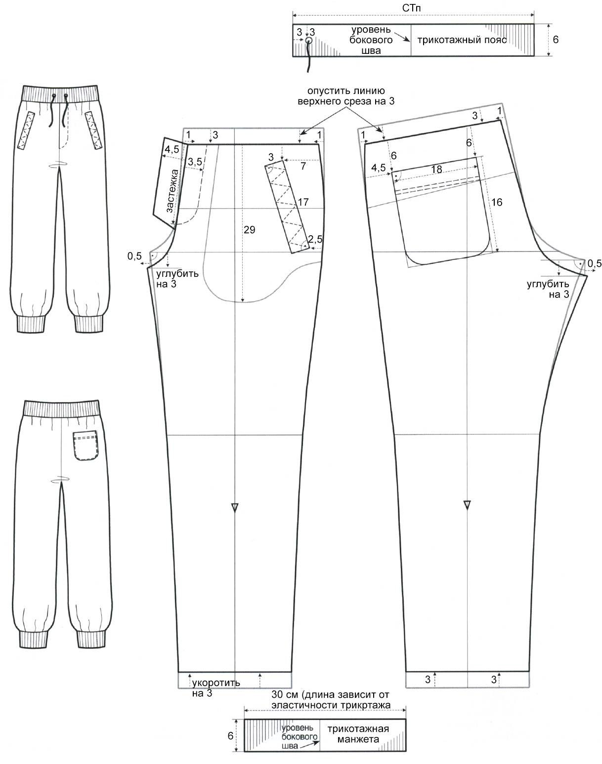 Построение выкройки спортивных штанов мужских