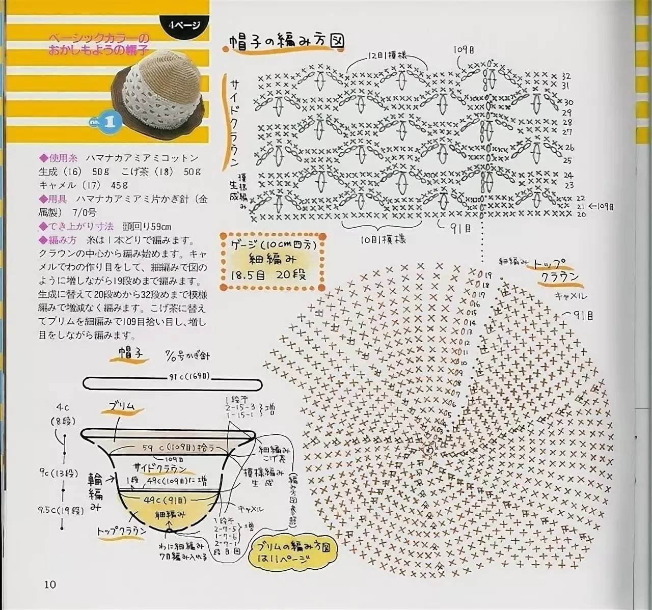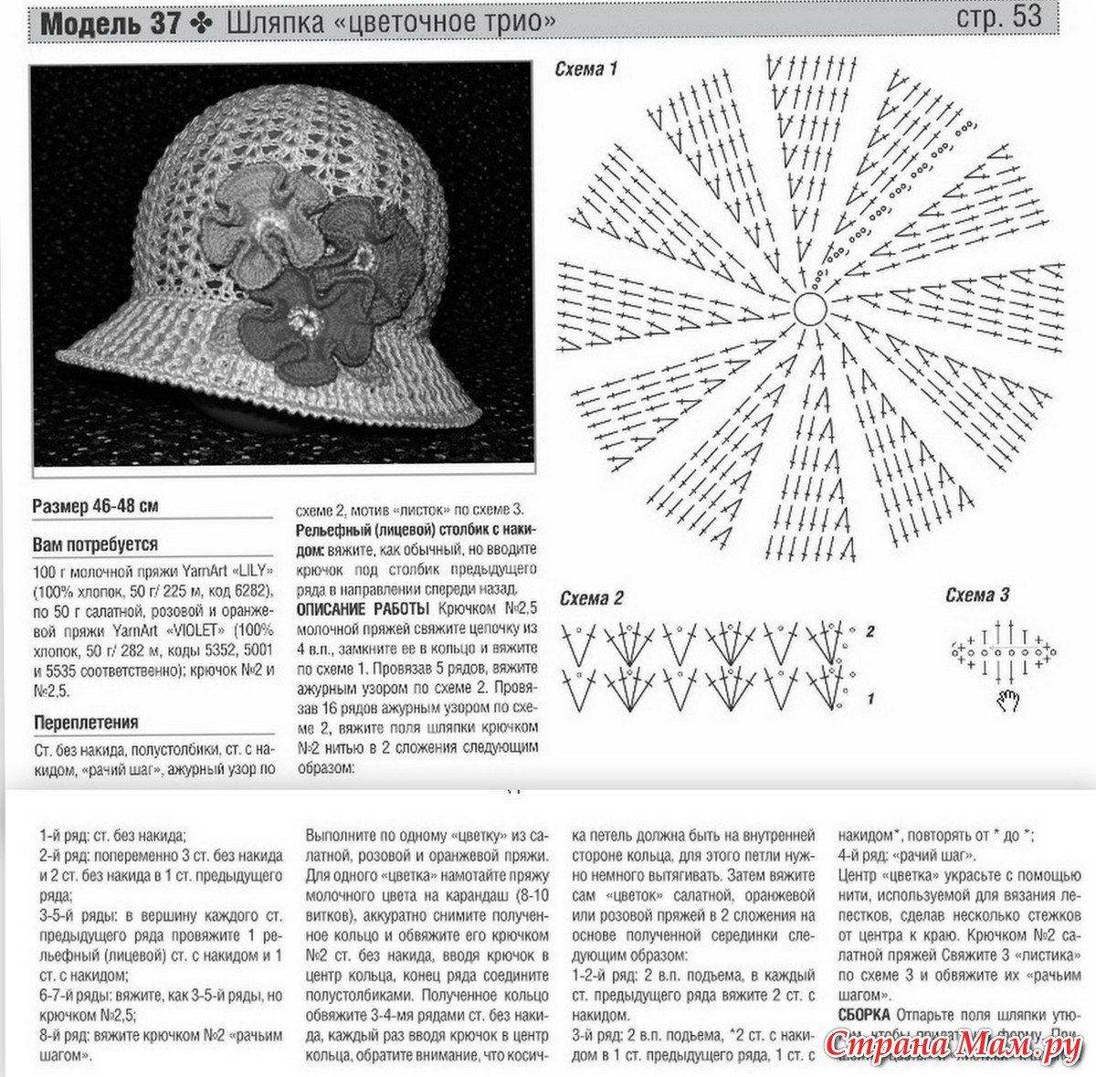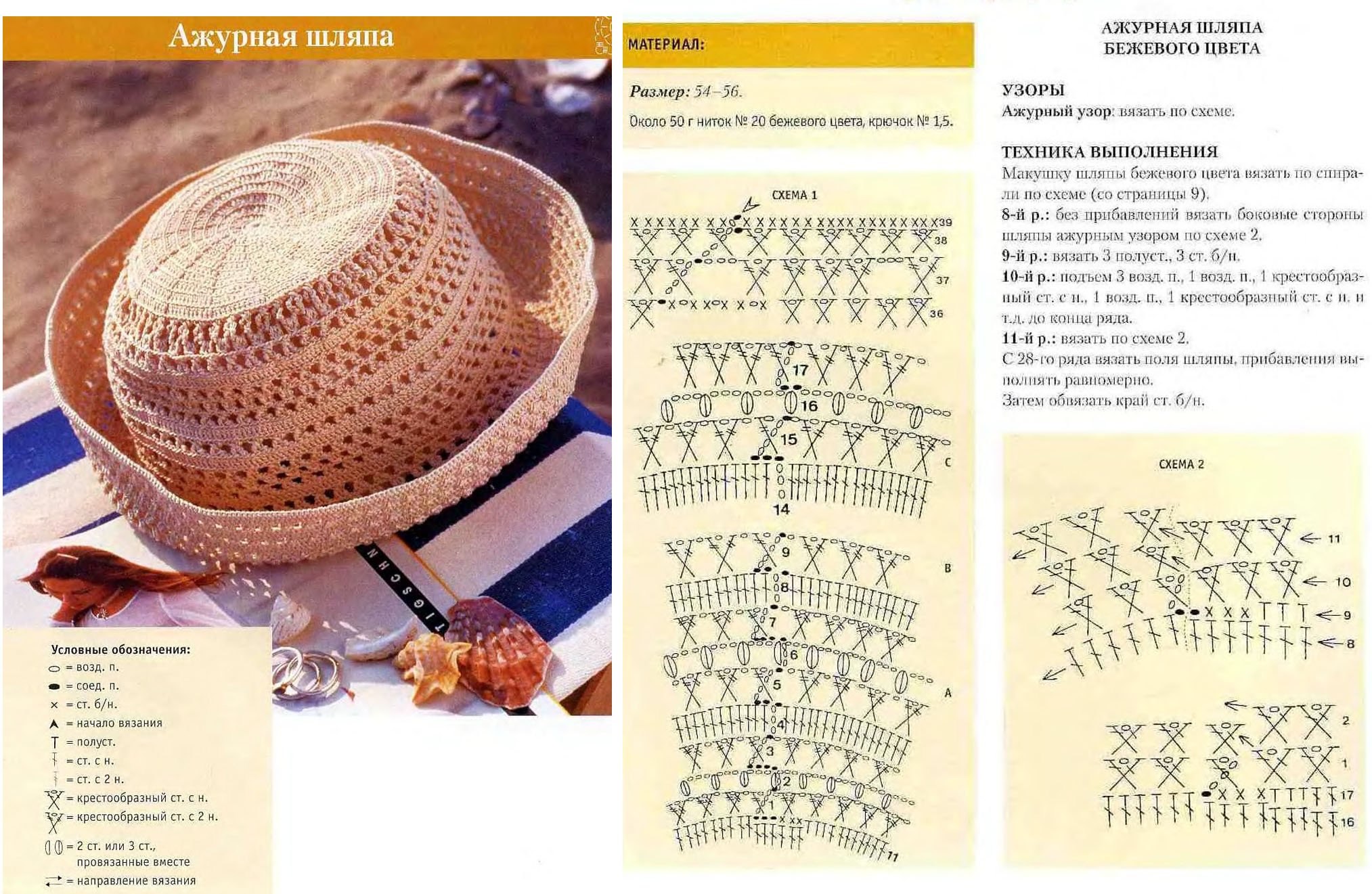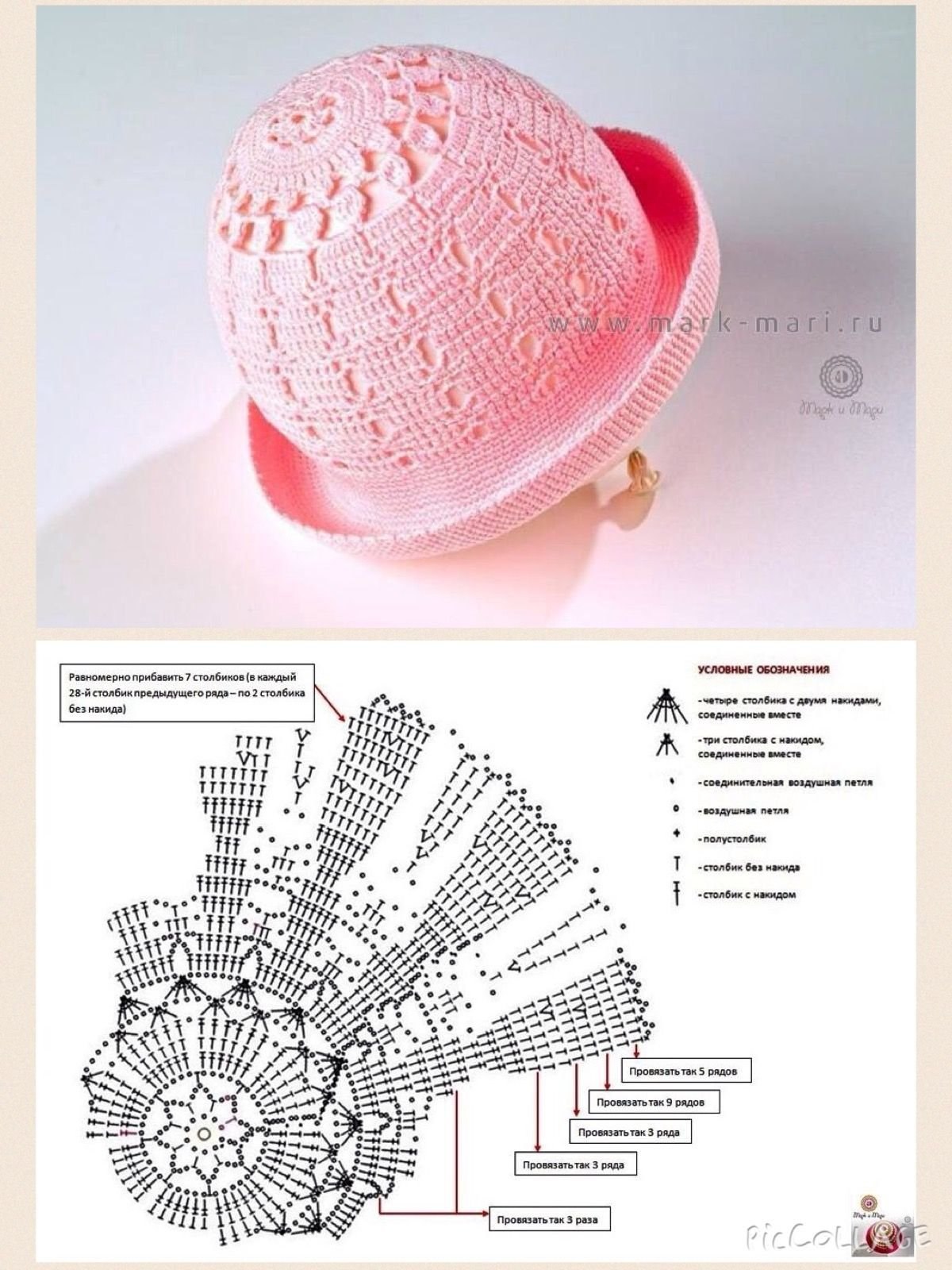 Схема вязания панамы крючком из рафии