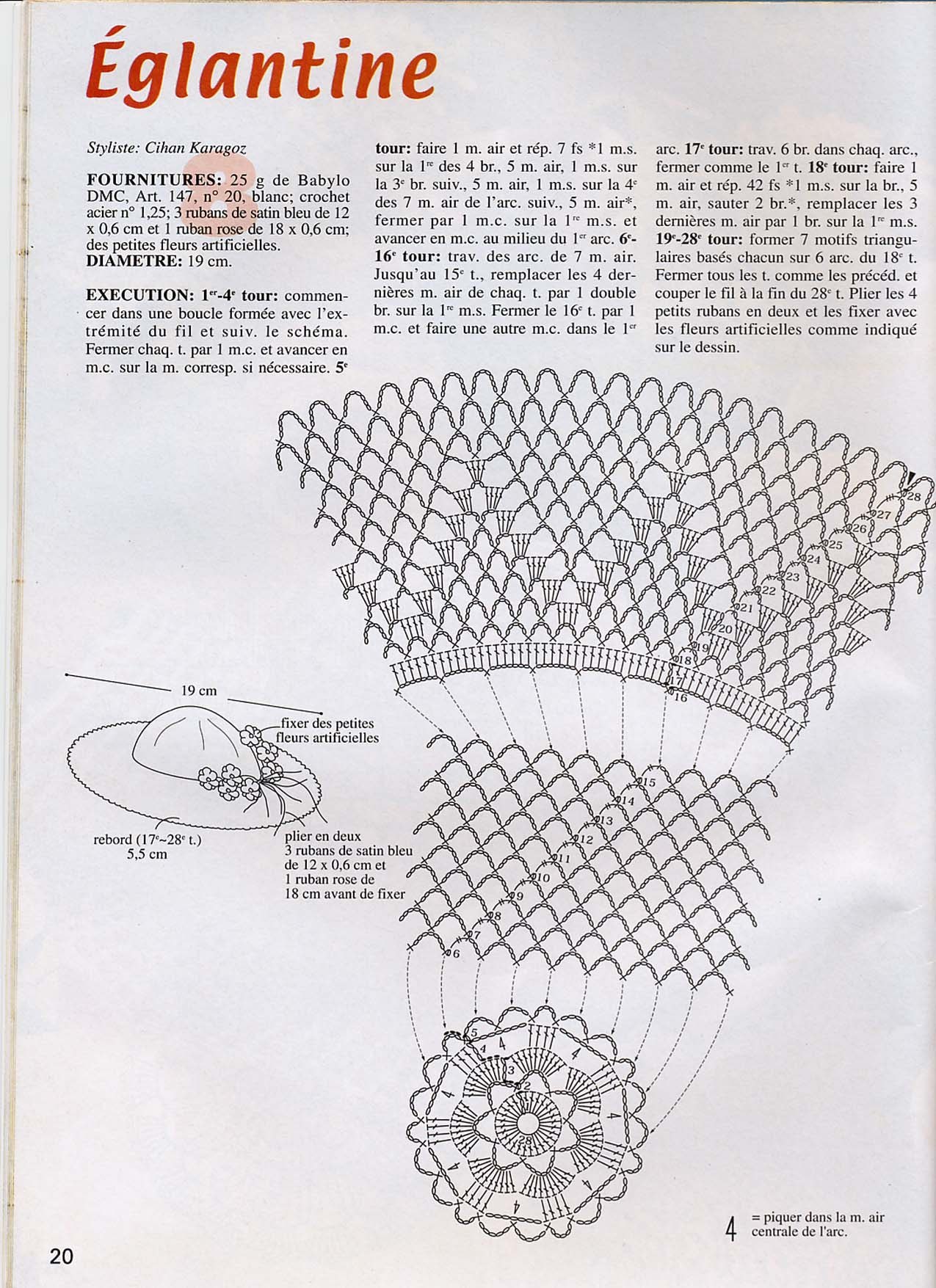 Схема вязания крючком шляпы канотье