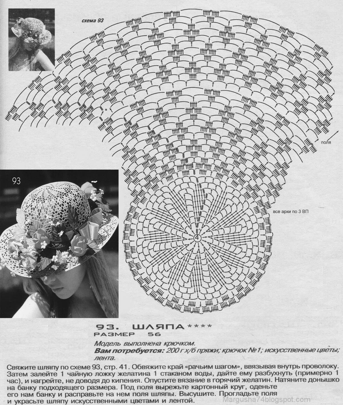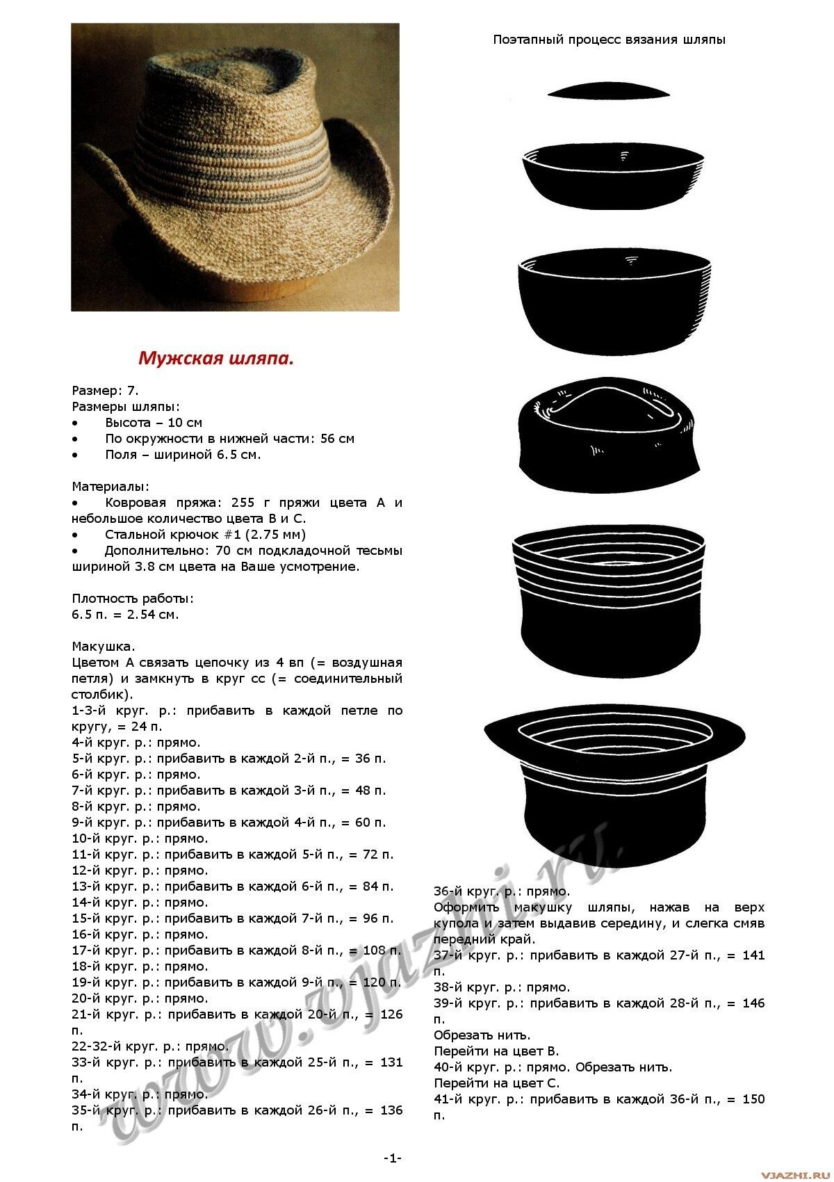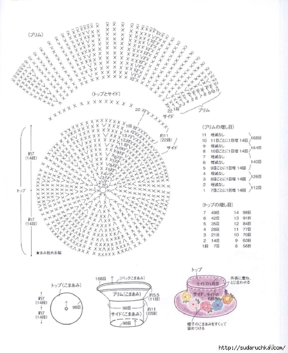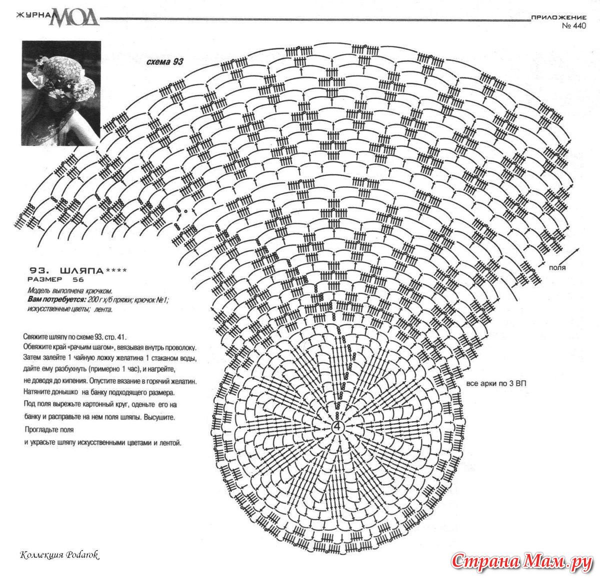 Схема вязания шляпы крючком с полями