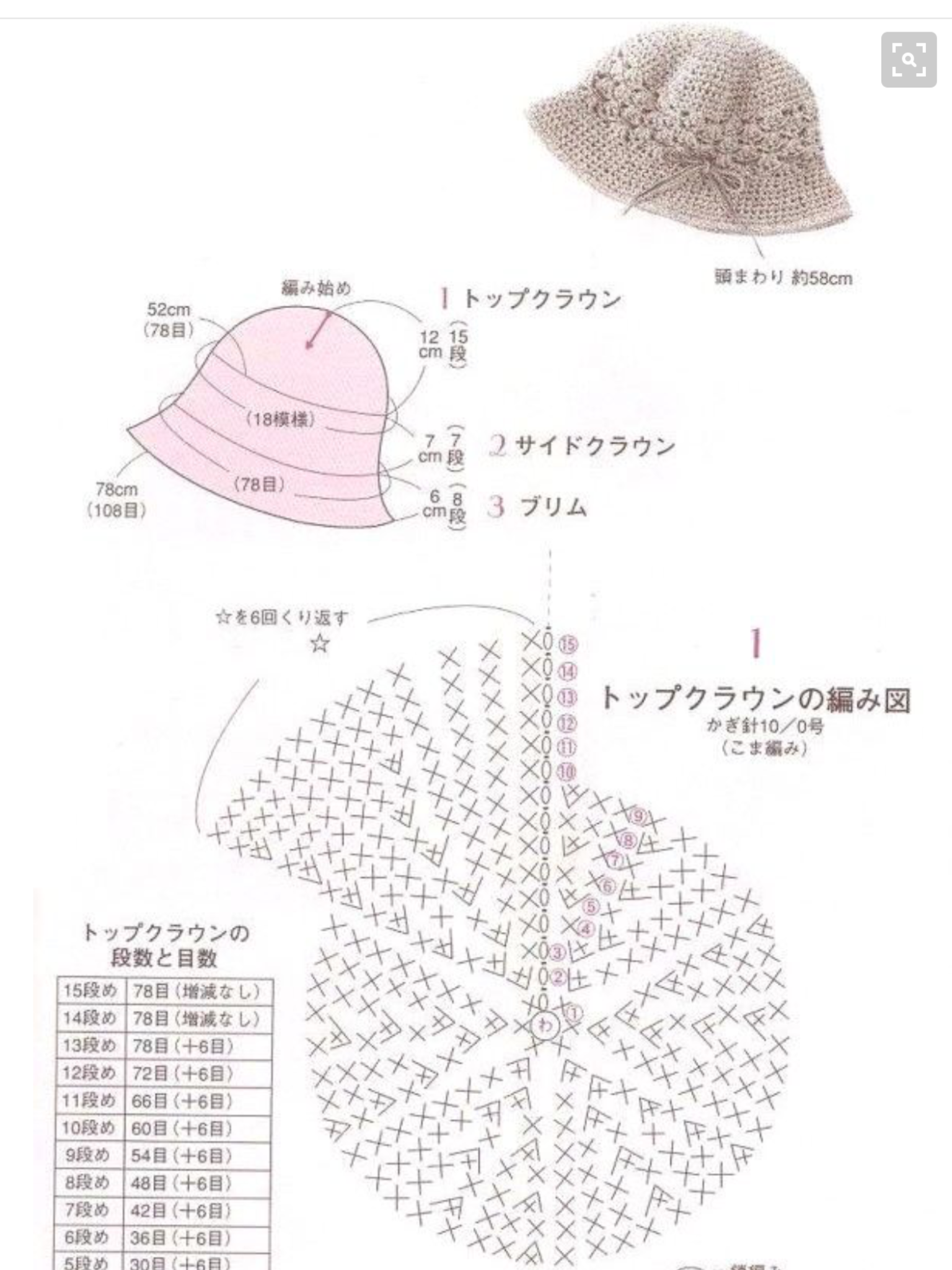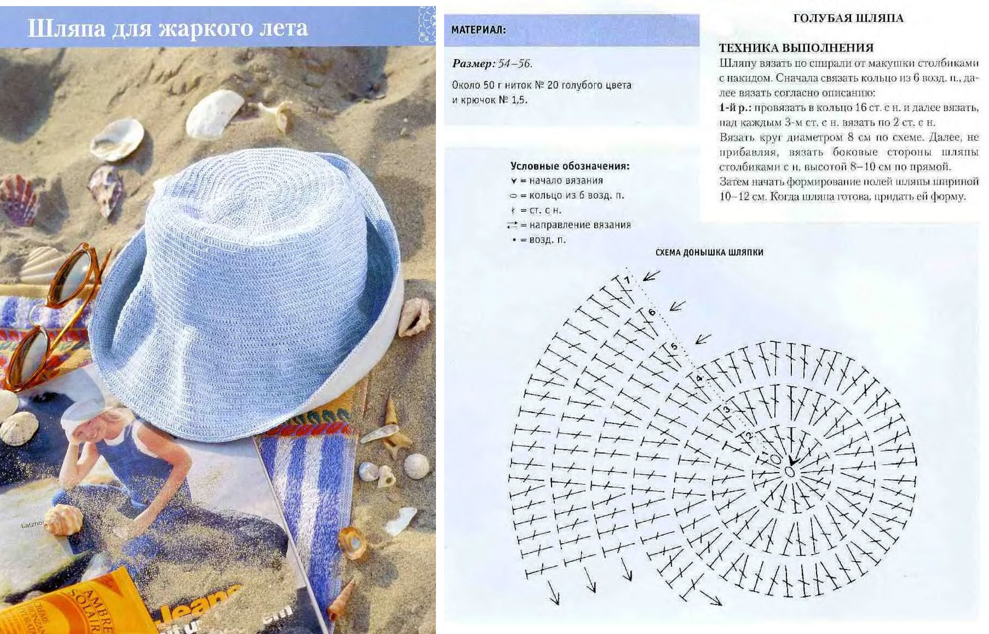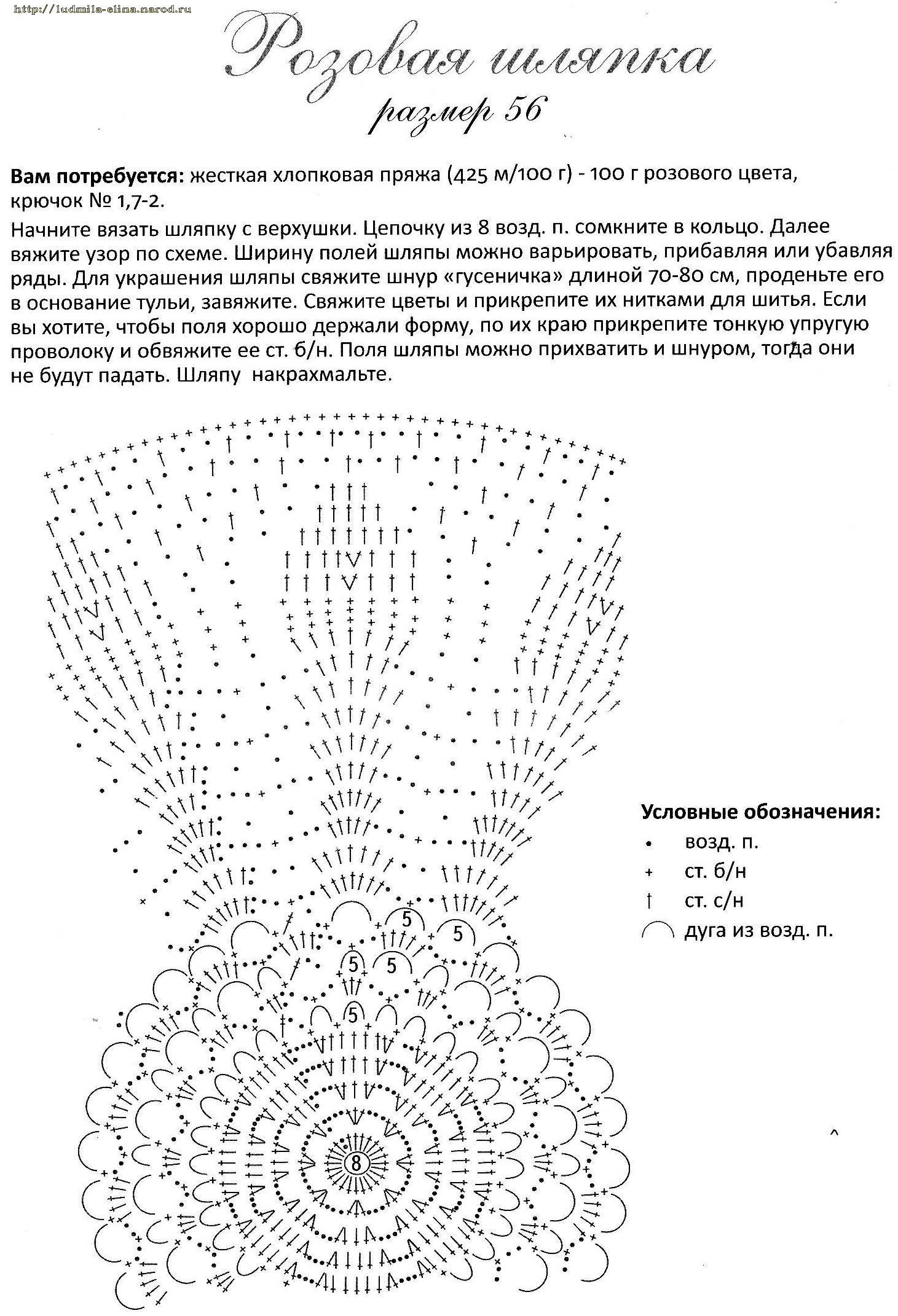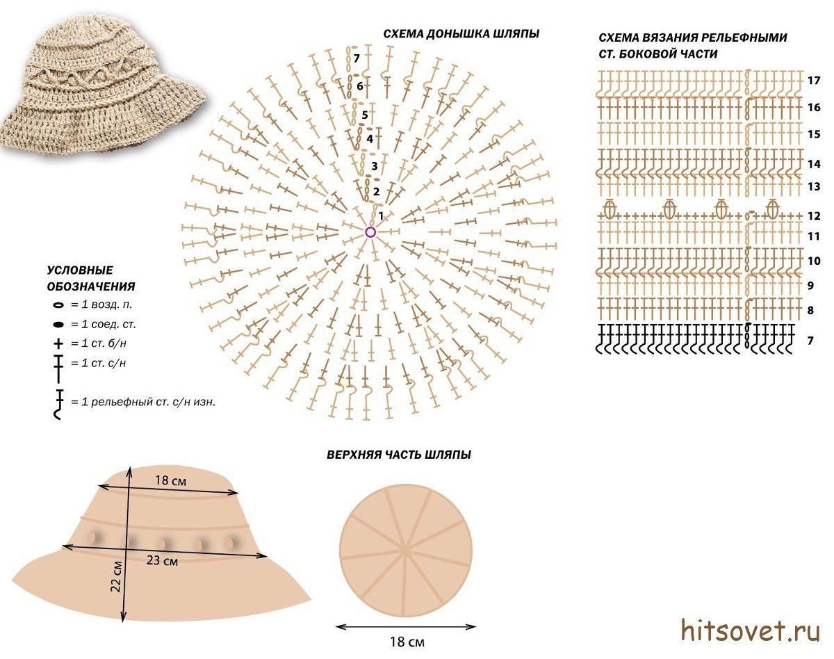 Схема вязания крючком летней шляпы