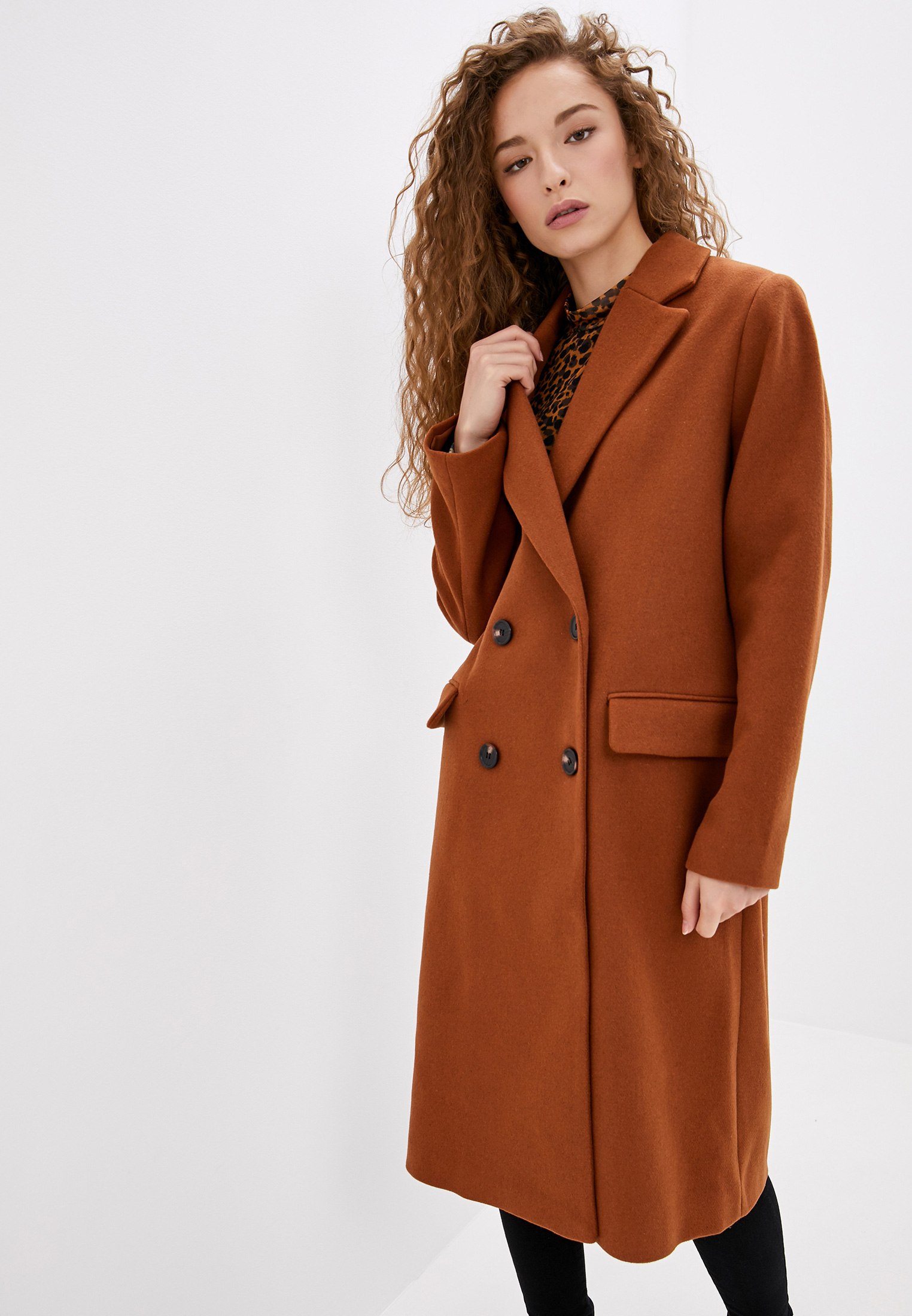 Коричневое пальто женское