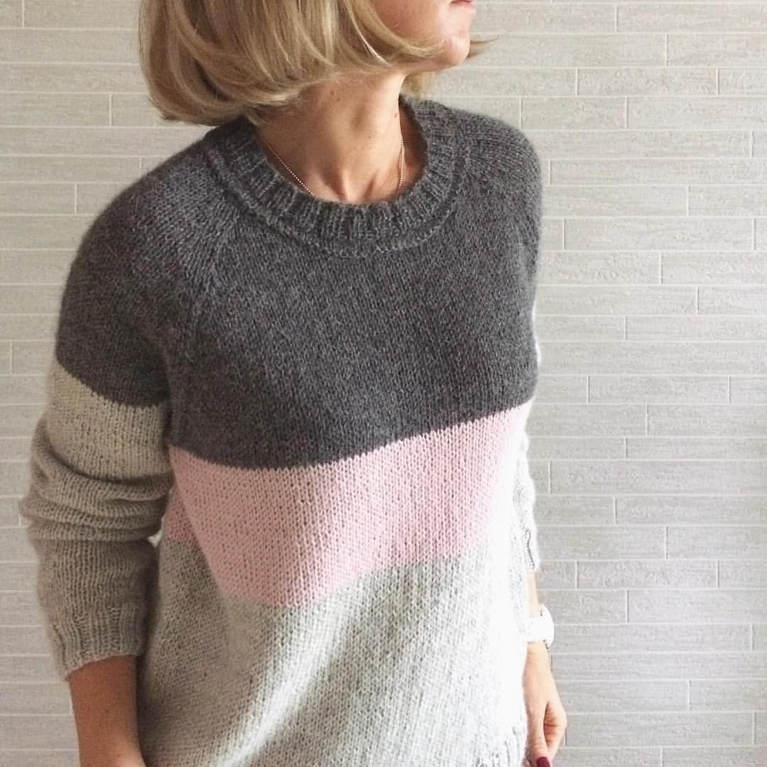 Трехцветный свитер спицами