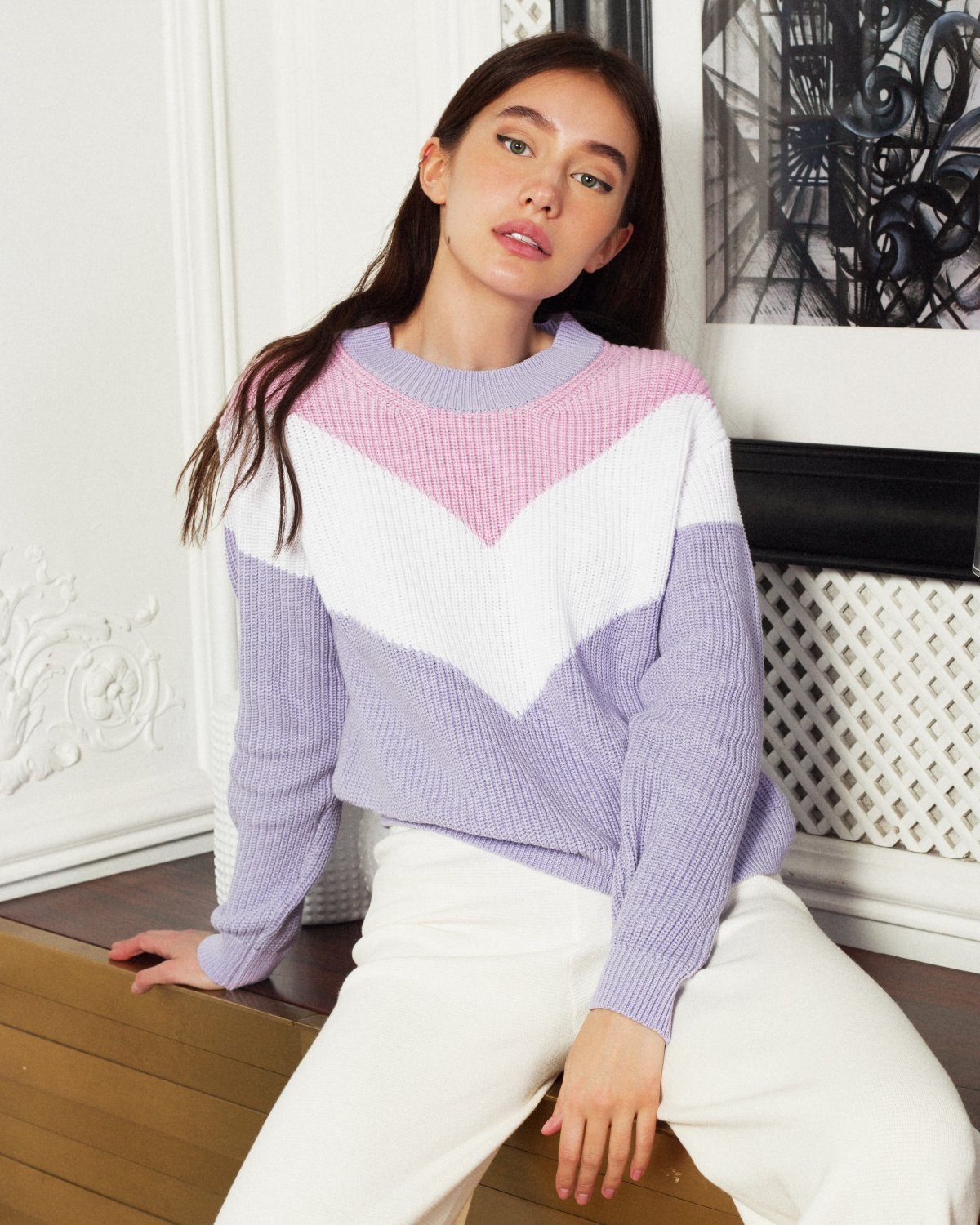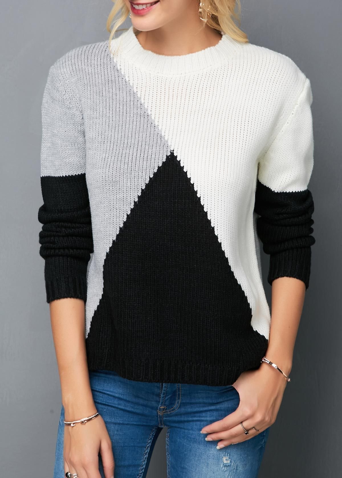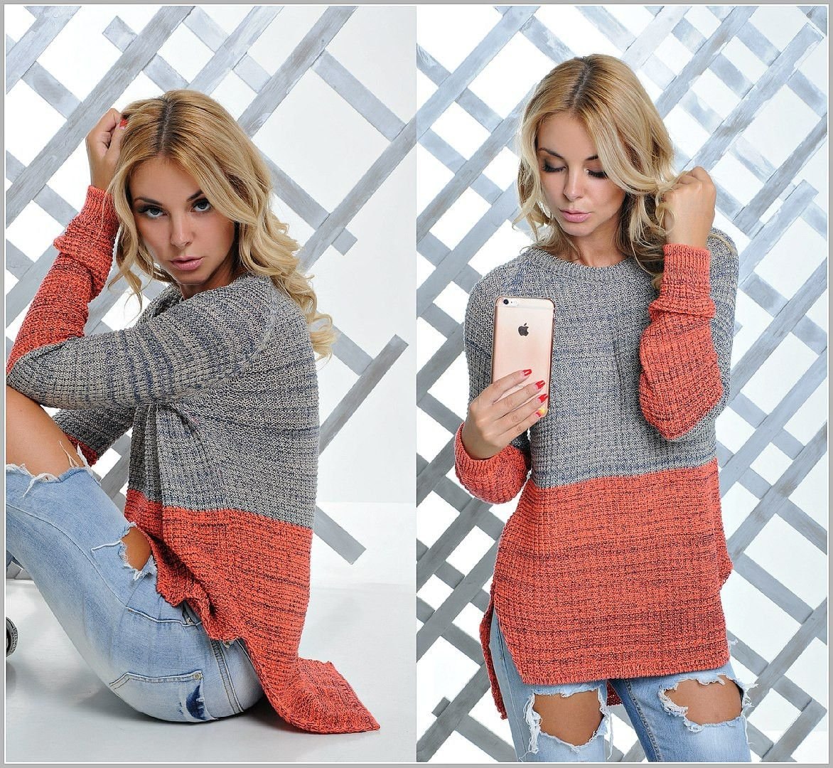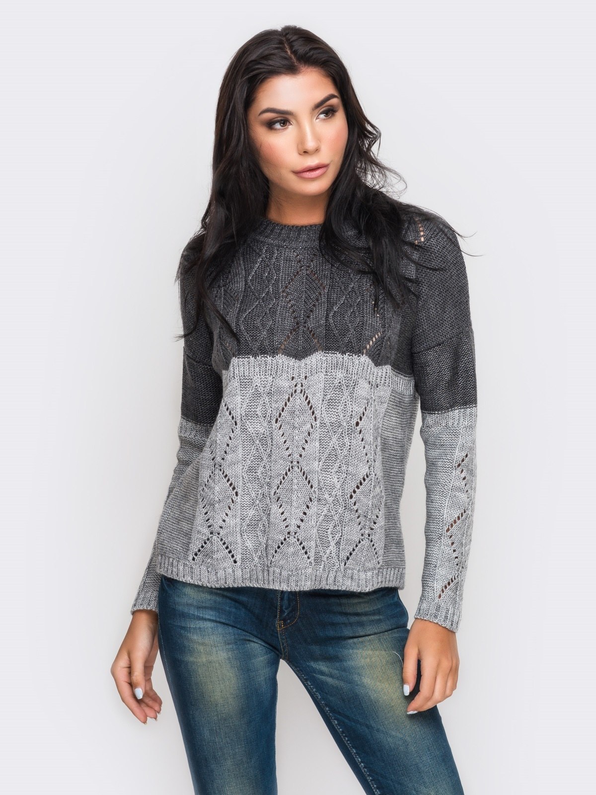 Двухцветные свитера женские вязаные