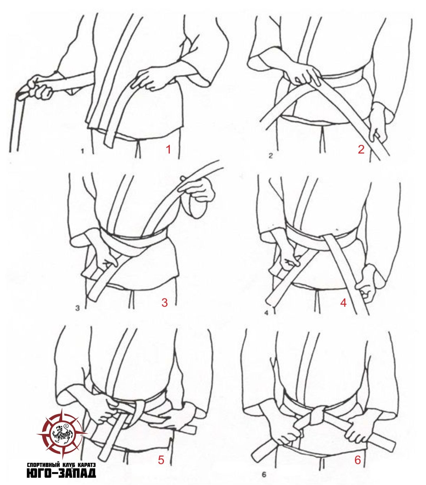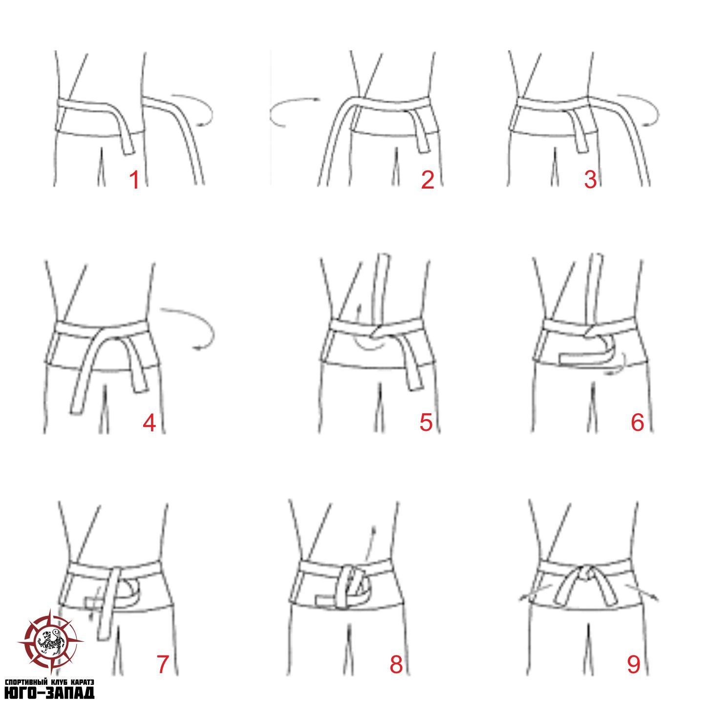 Схема завязывания пояса в дзюдо