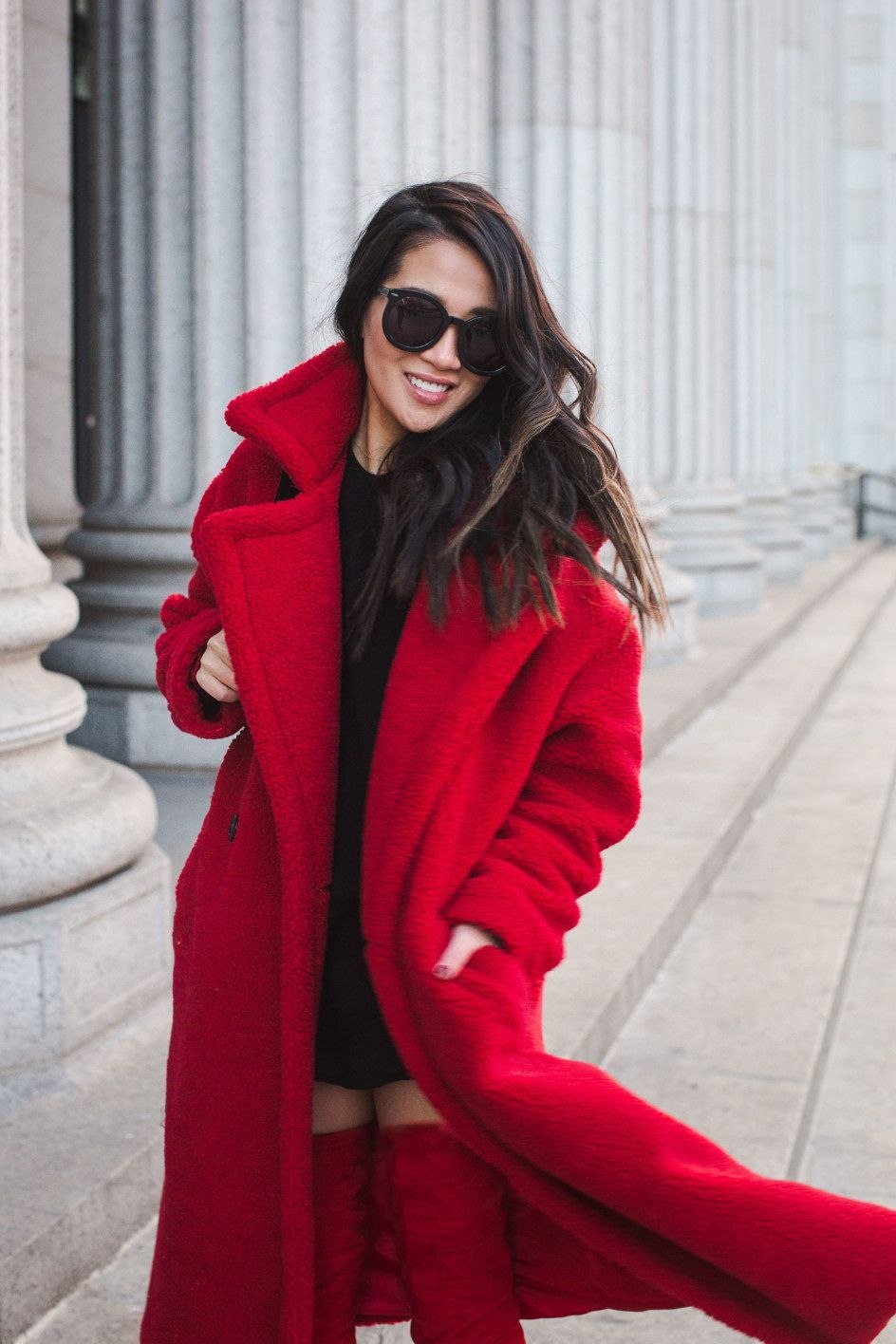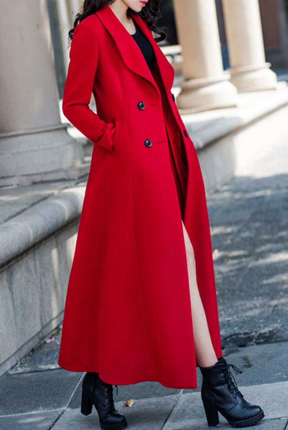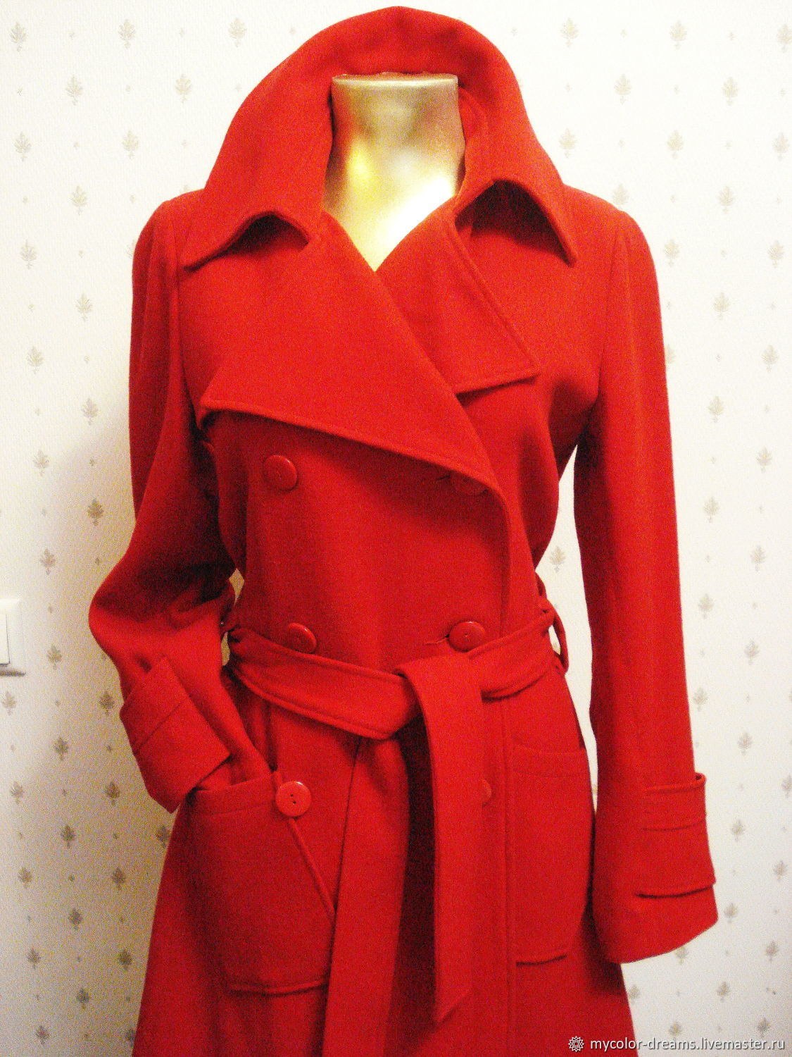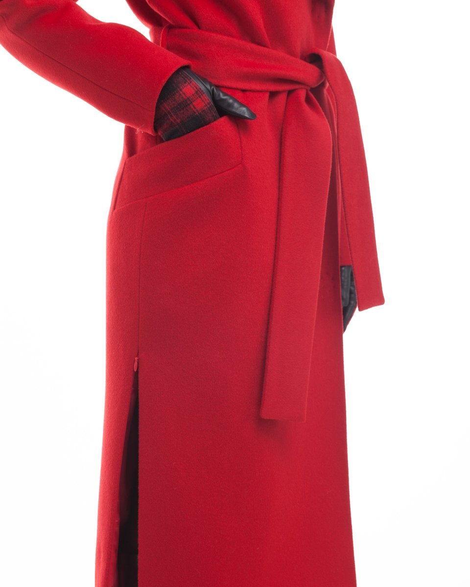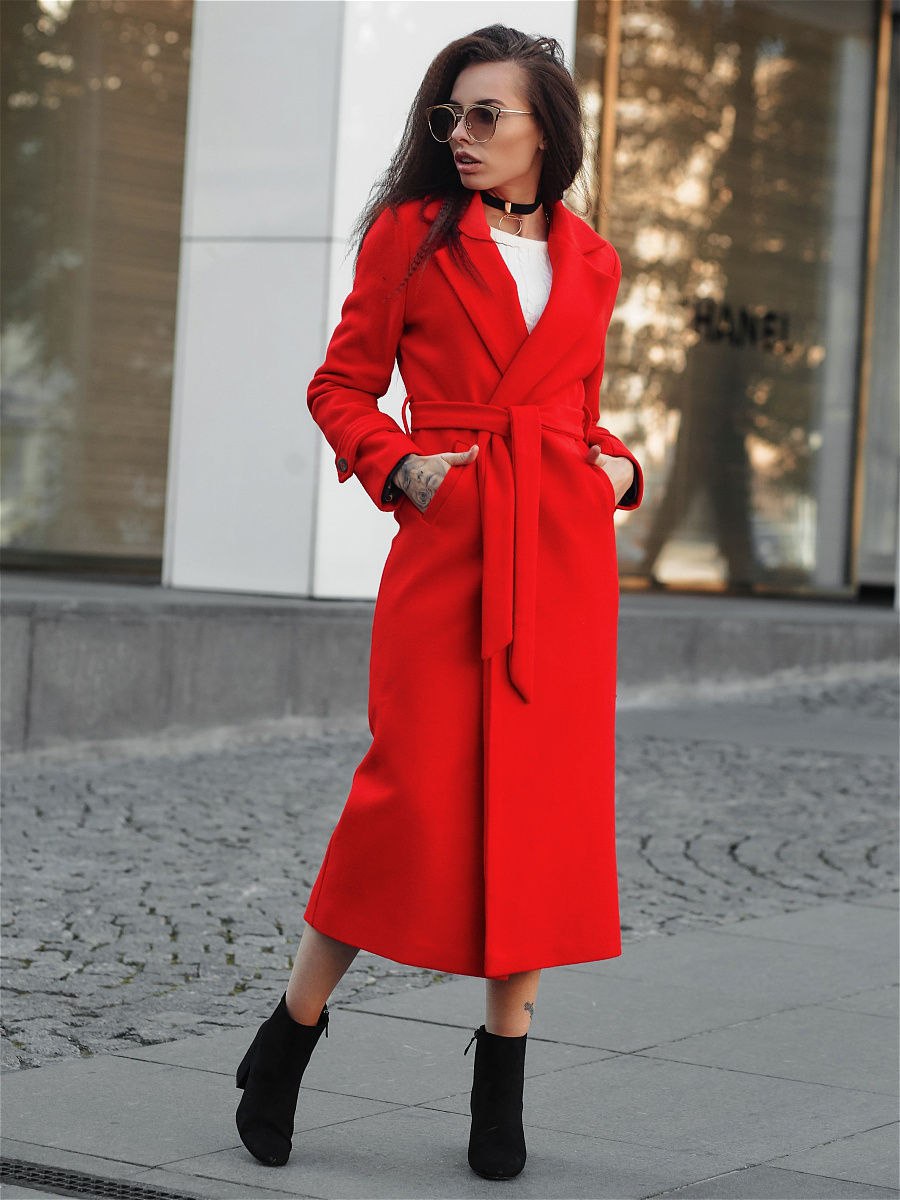 Длинное красное пальто