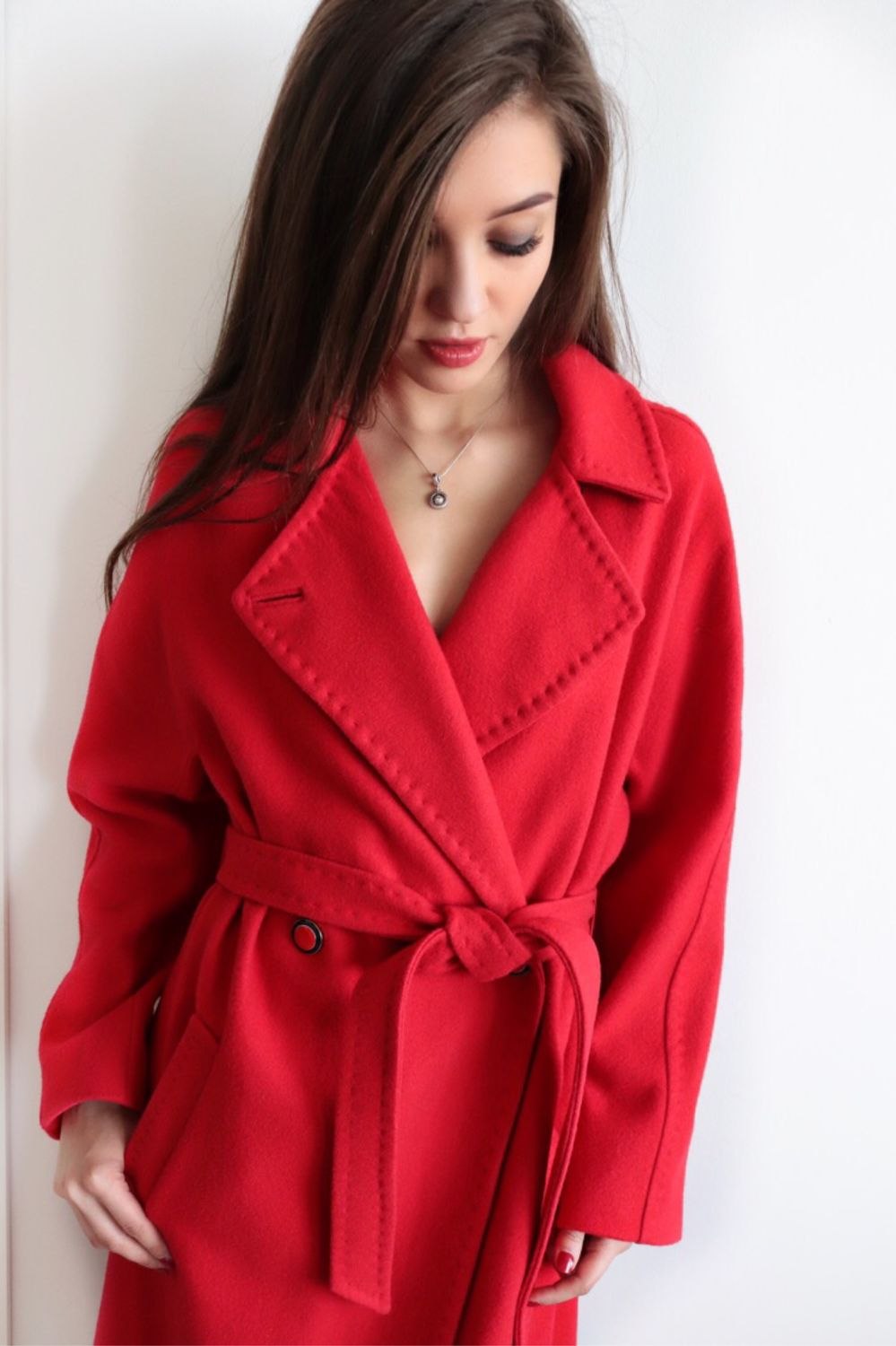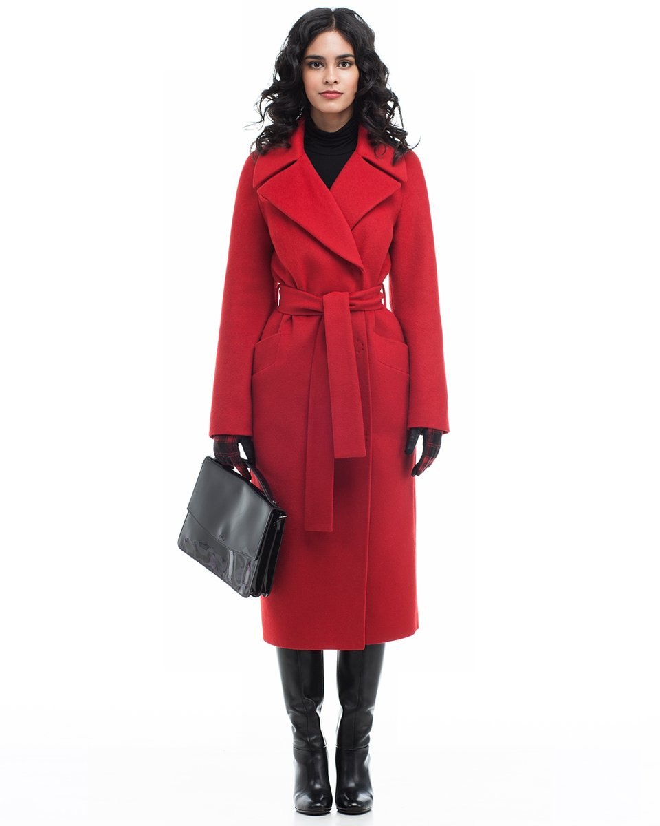 Кашемировое красное пальто женское