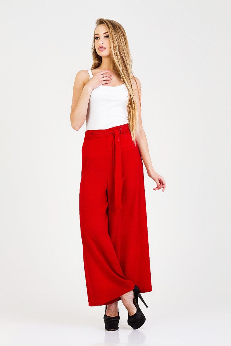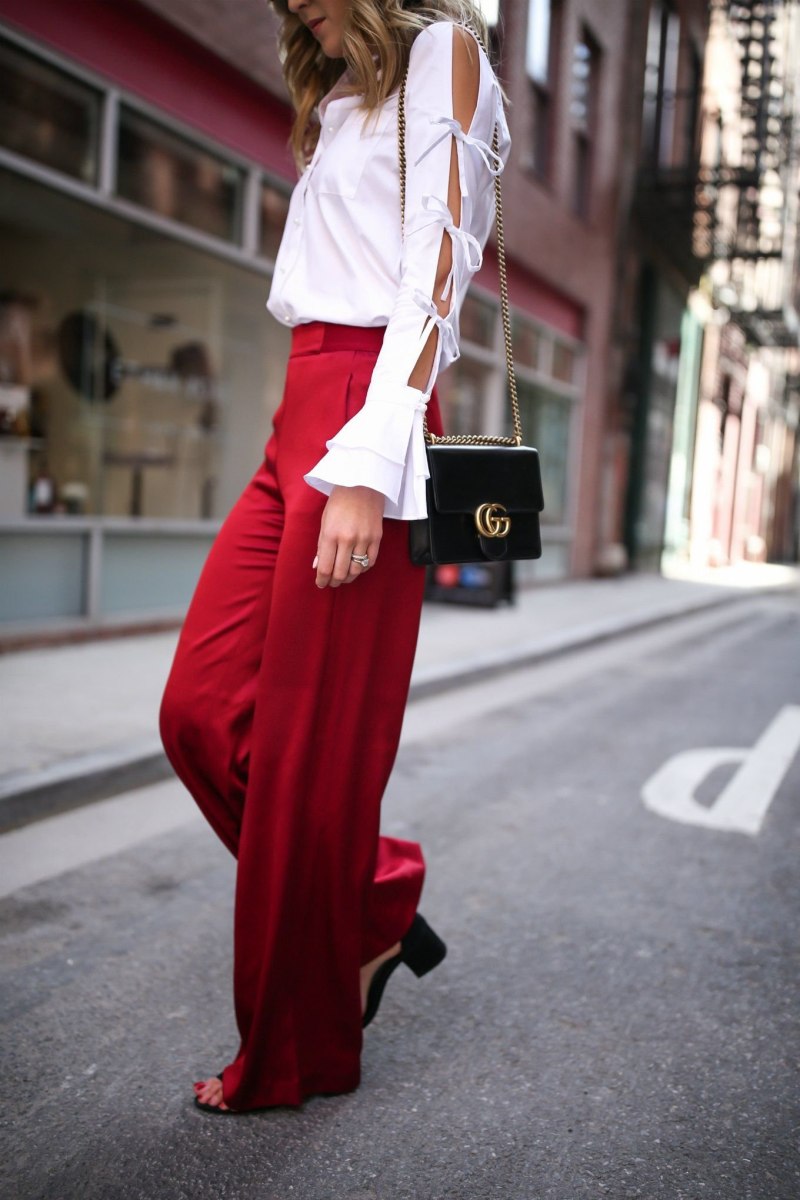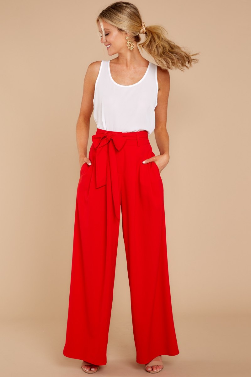 С чем носить красные брюки палаццо