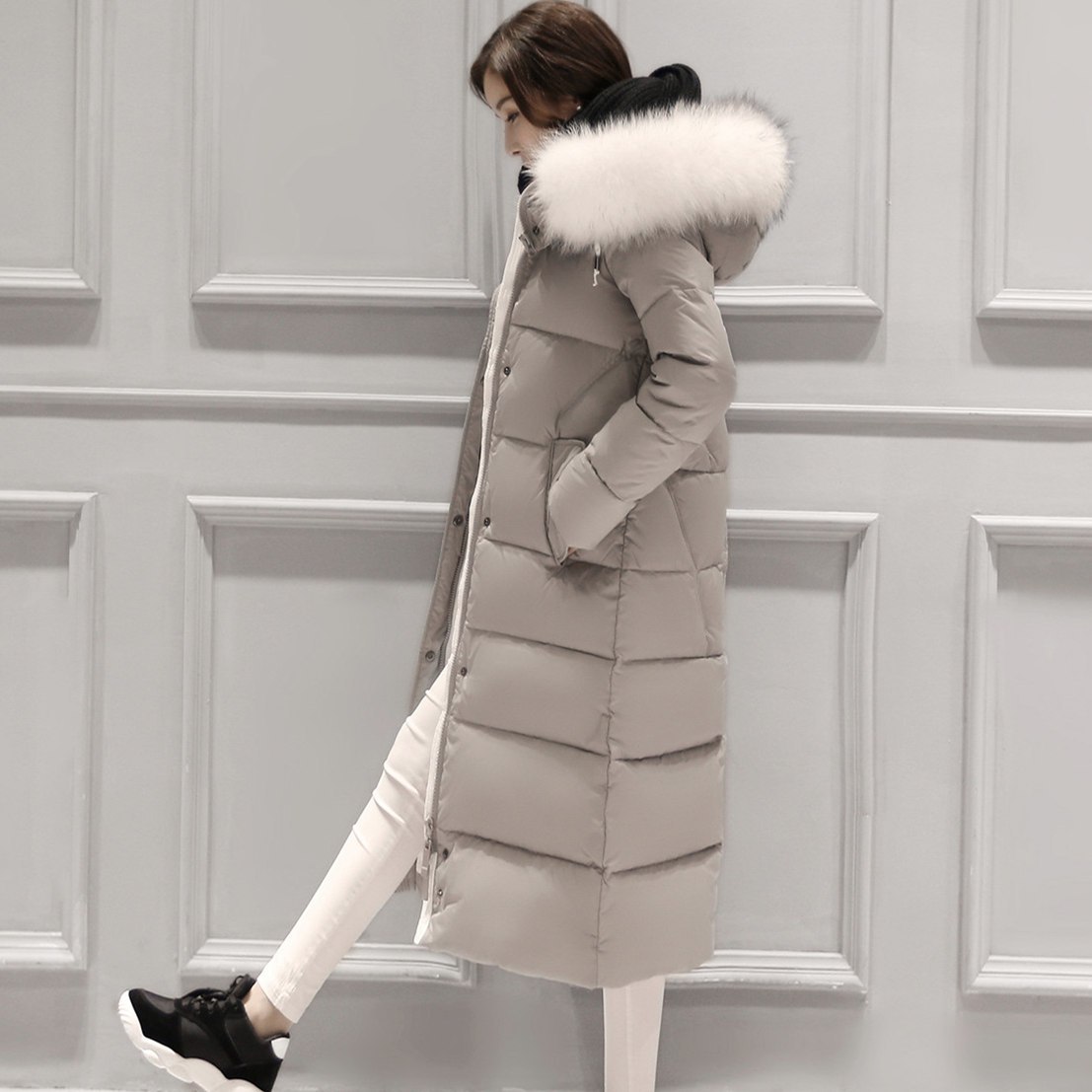 Длинный пуховик женский