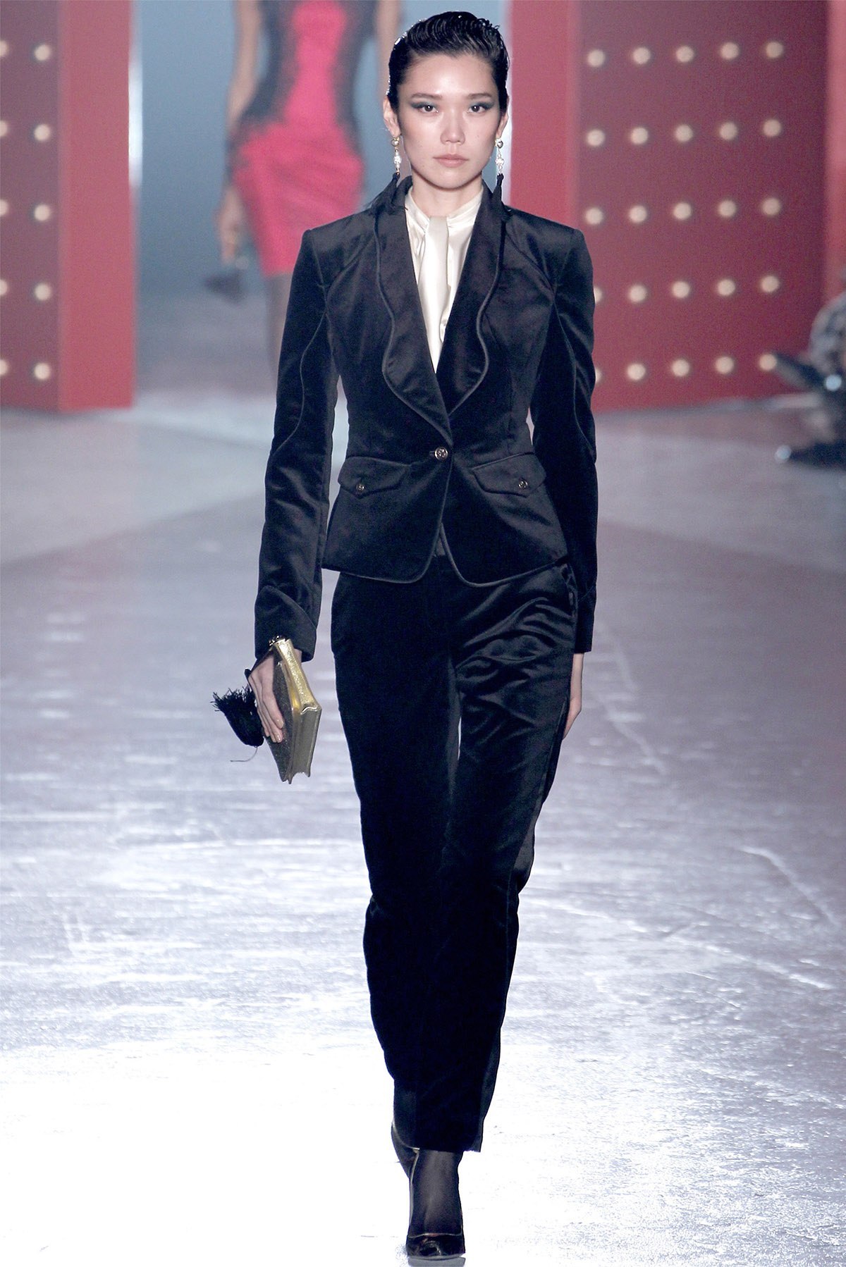 Красное бархатное платье подиум