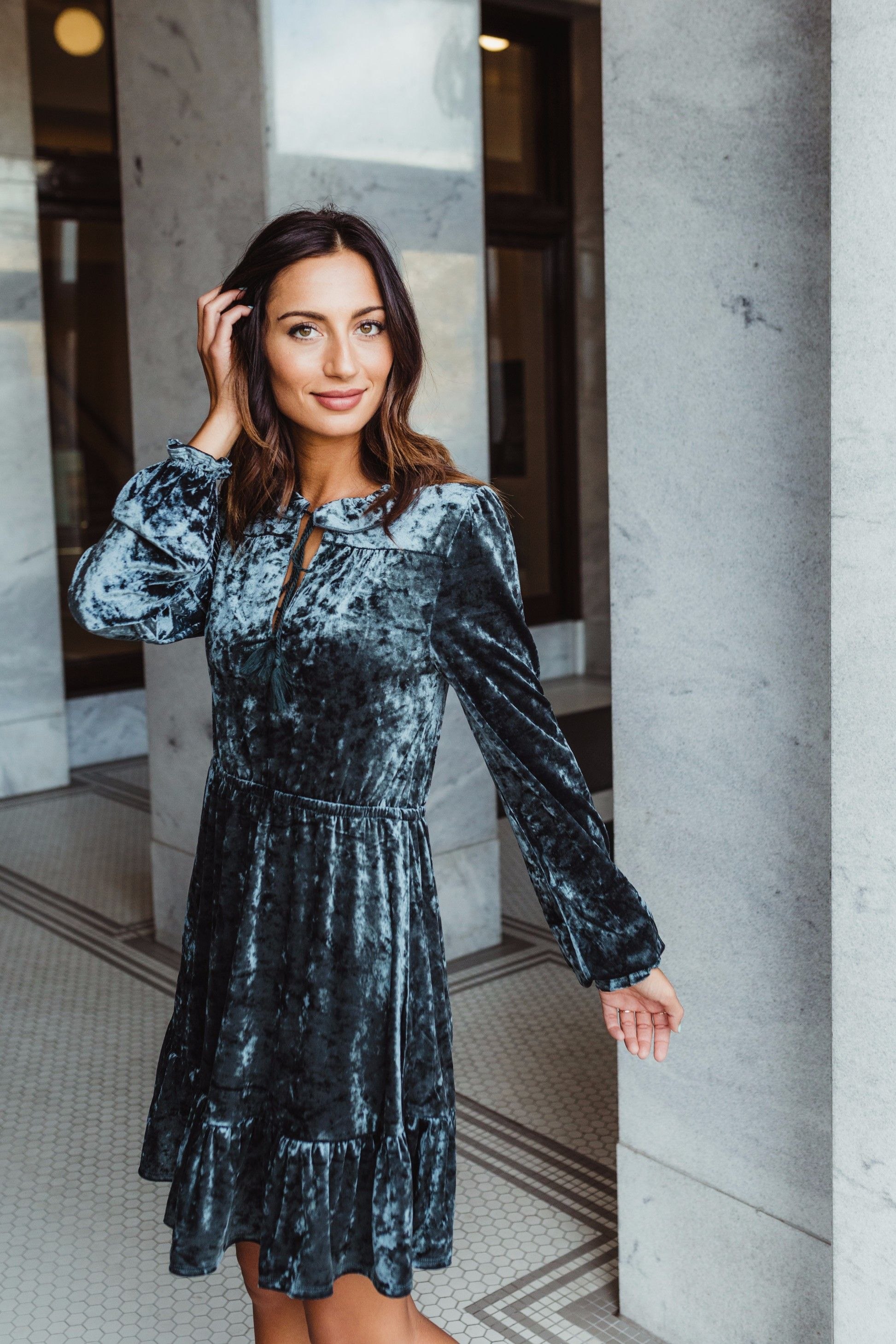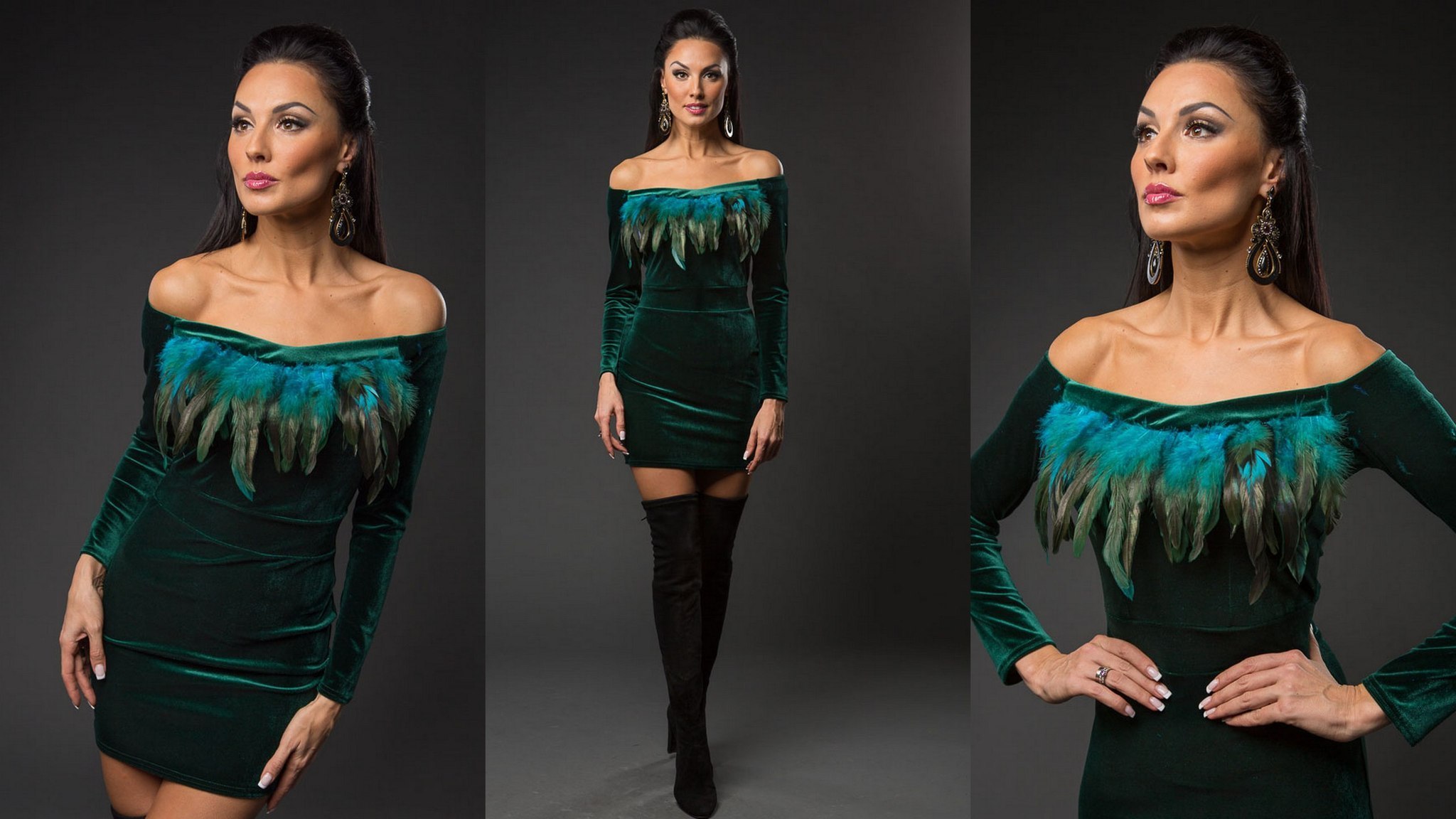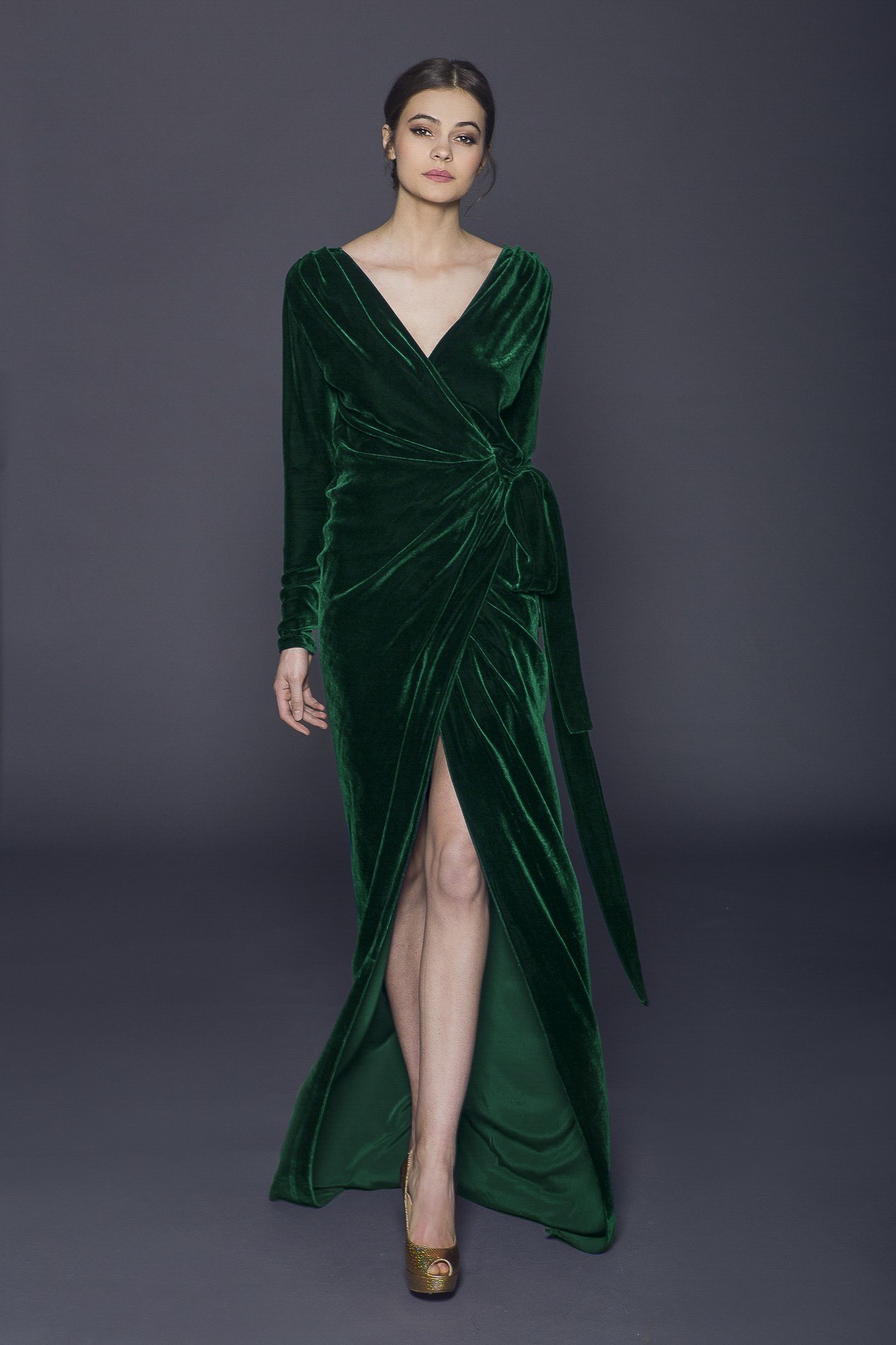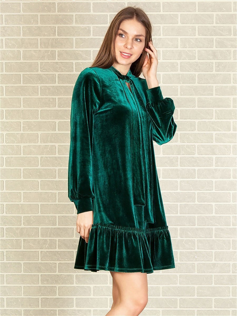 Зеленое бархатное платье