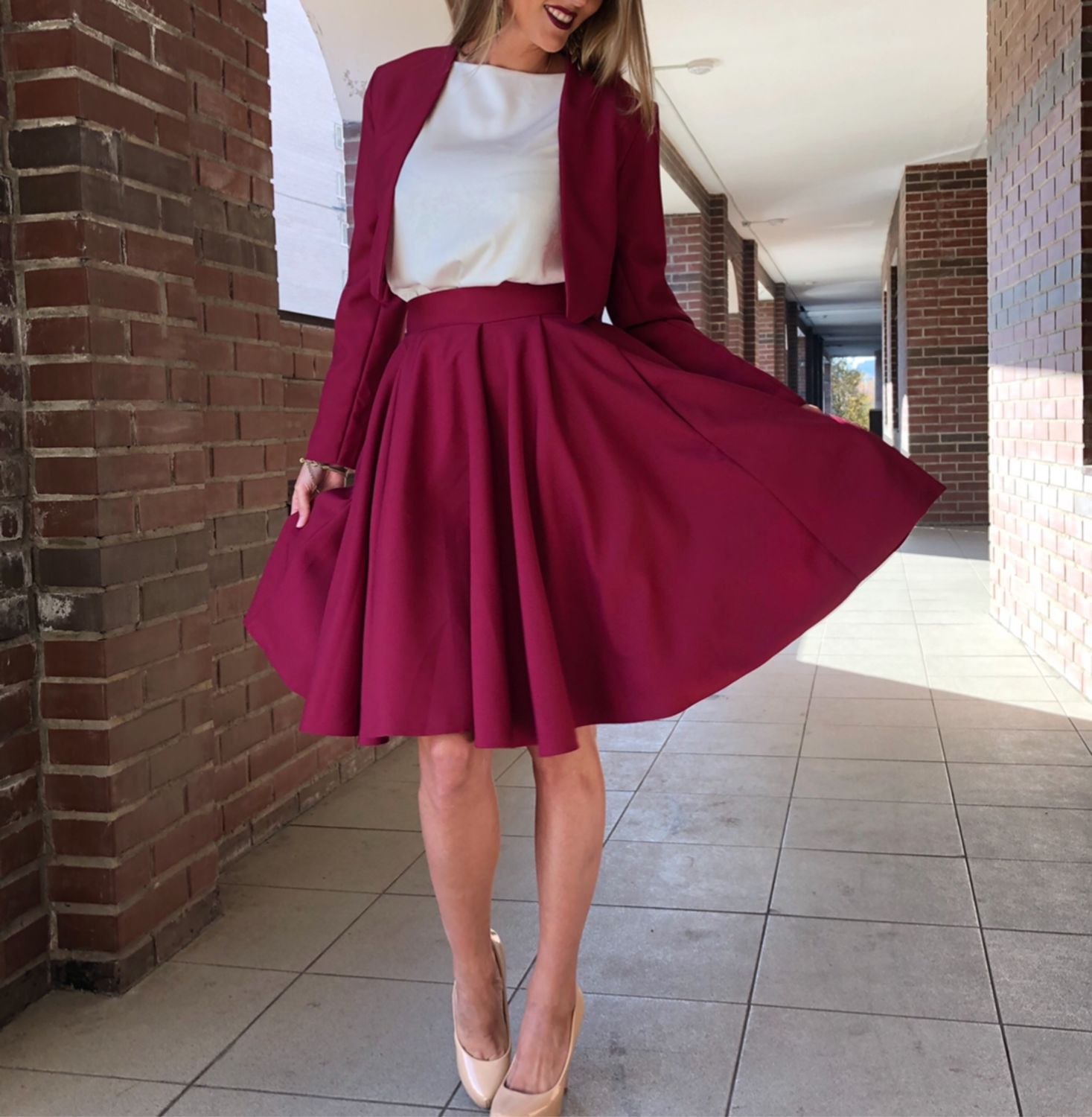 Малиновая юбка с блузкой