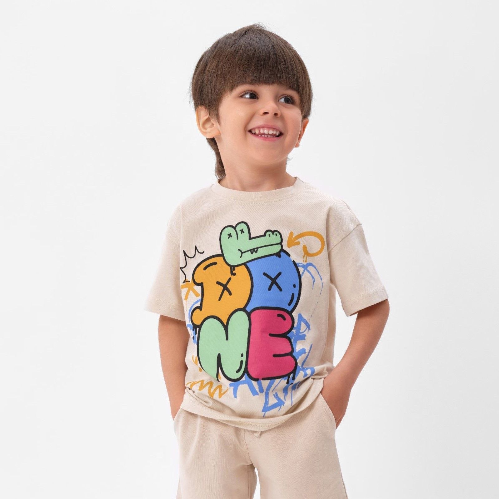 Мальчик в бежевой футболке