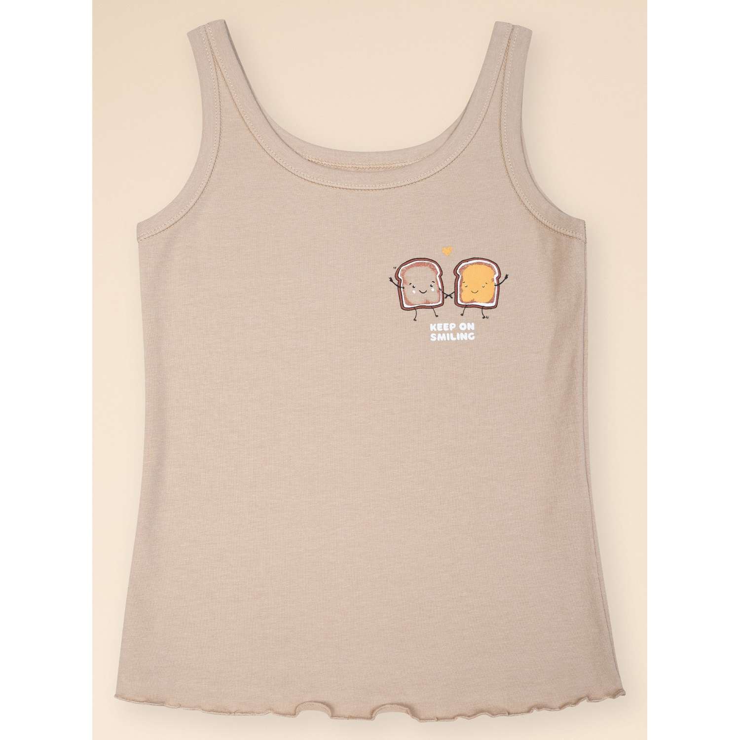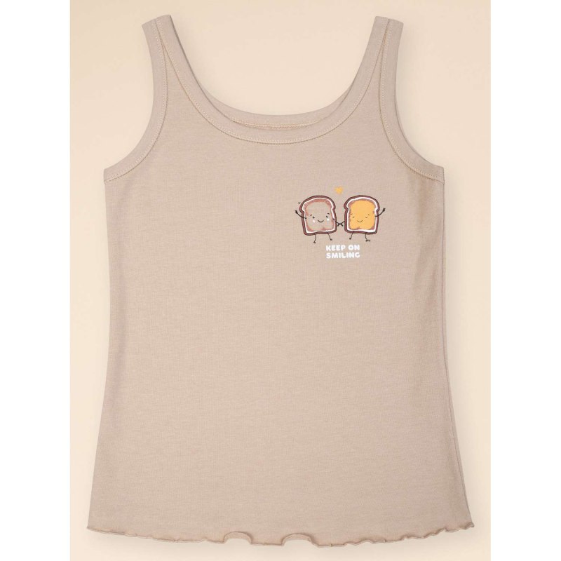 Футболка бежевая для девочки на лямках с надписями
