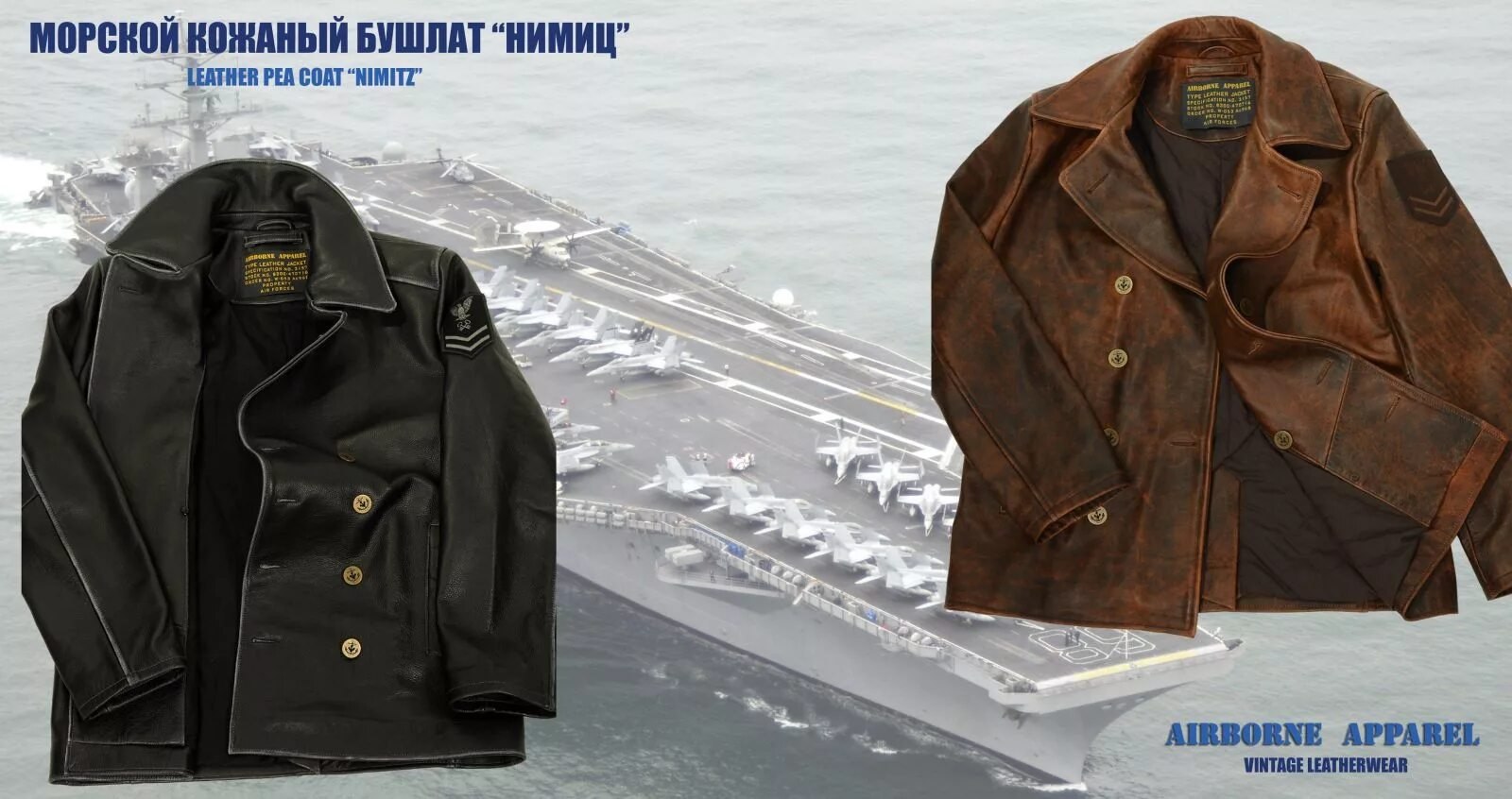 Кожаный штормовой бушлат ВМФ С воротником