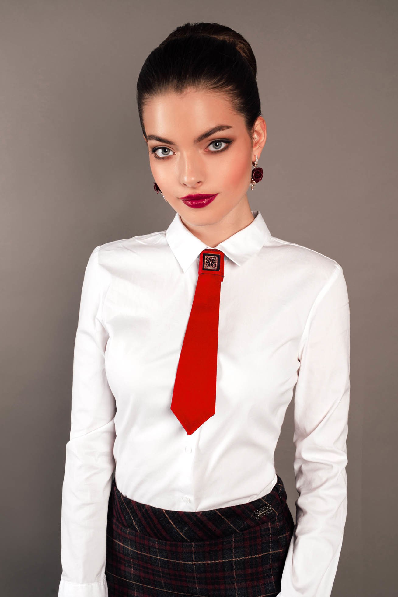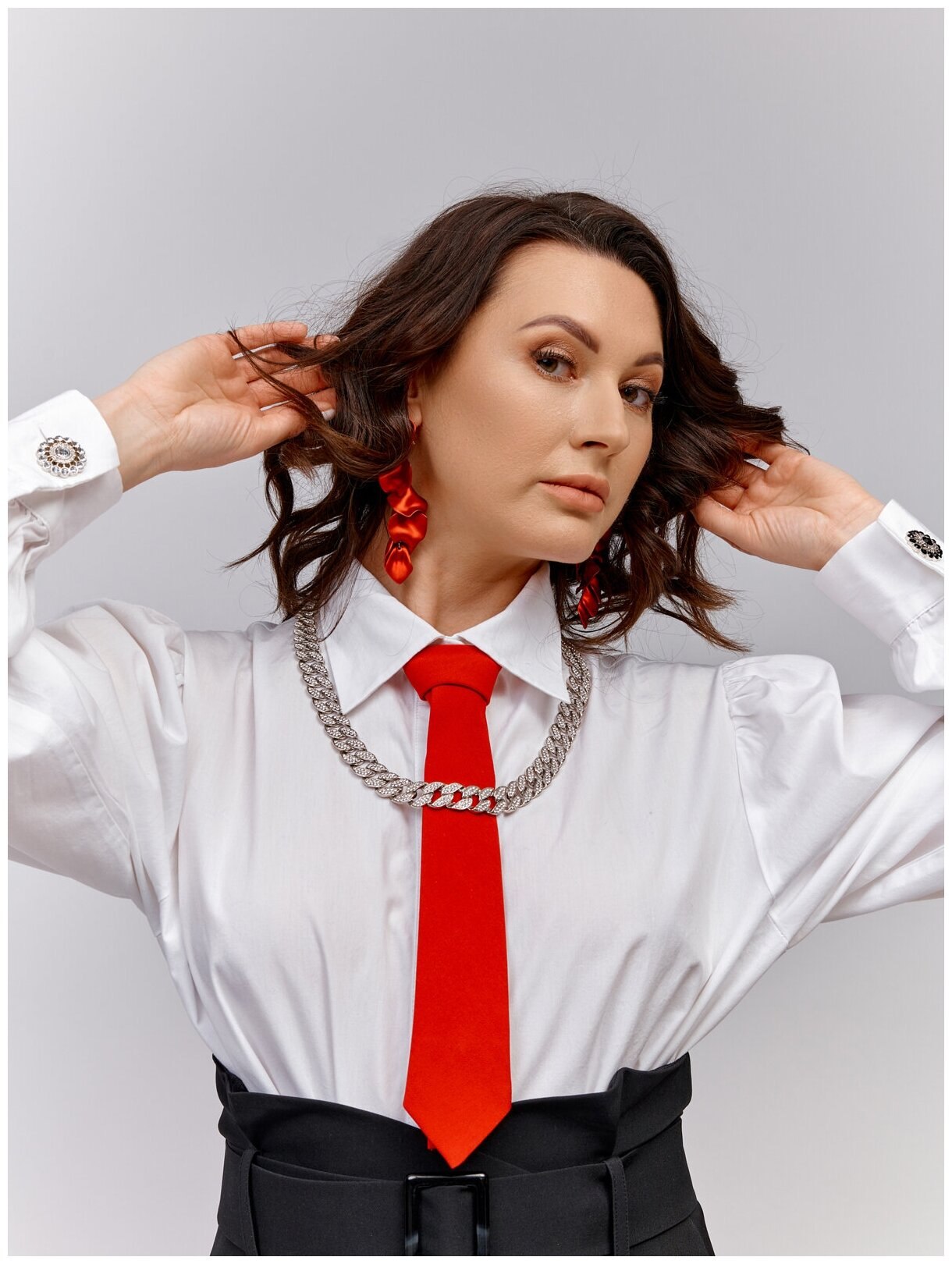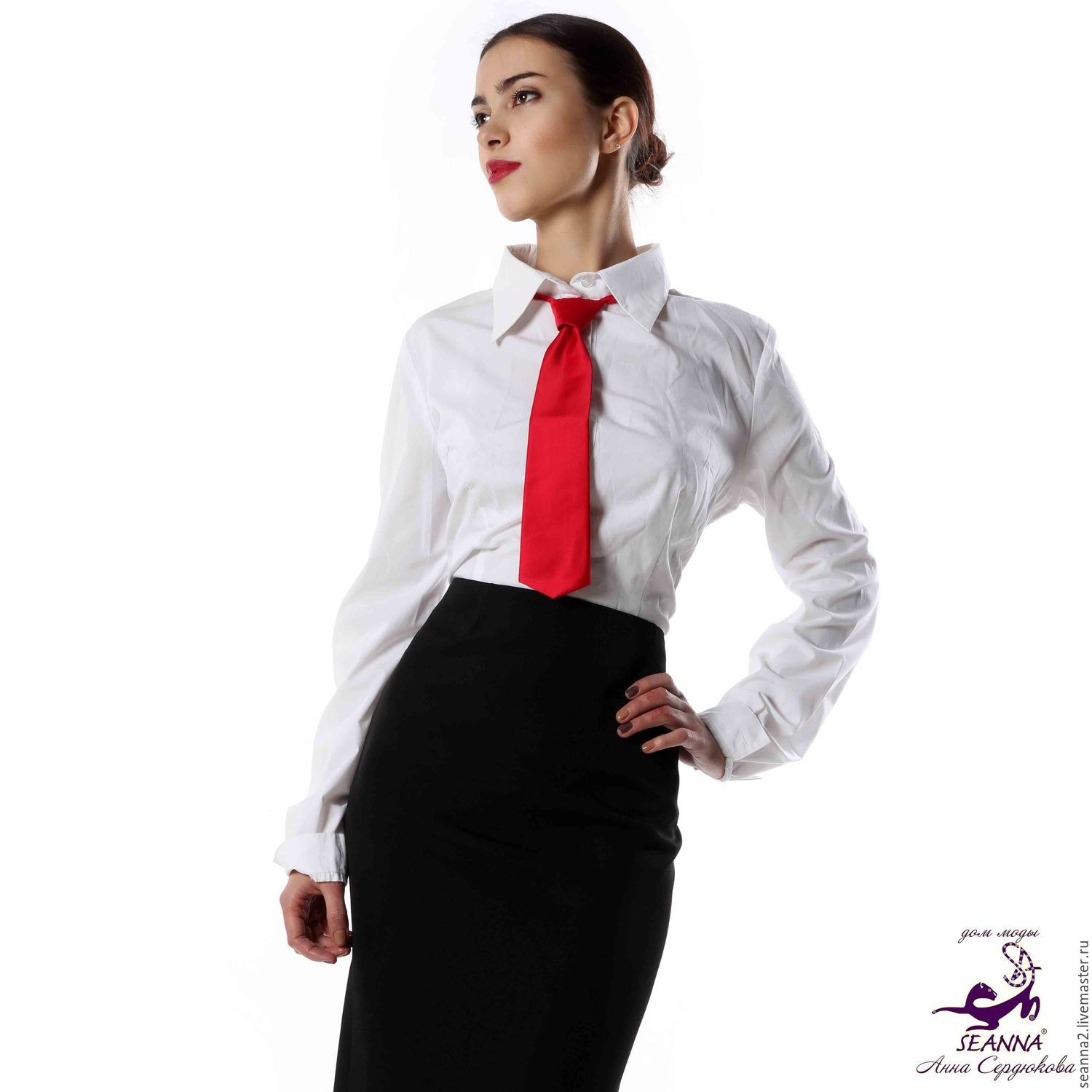 Белая рубашка с красным галстуком