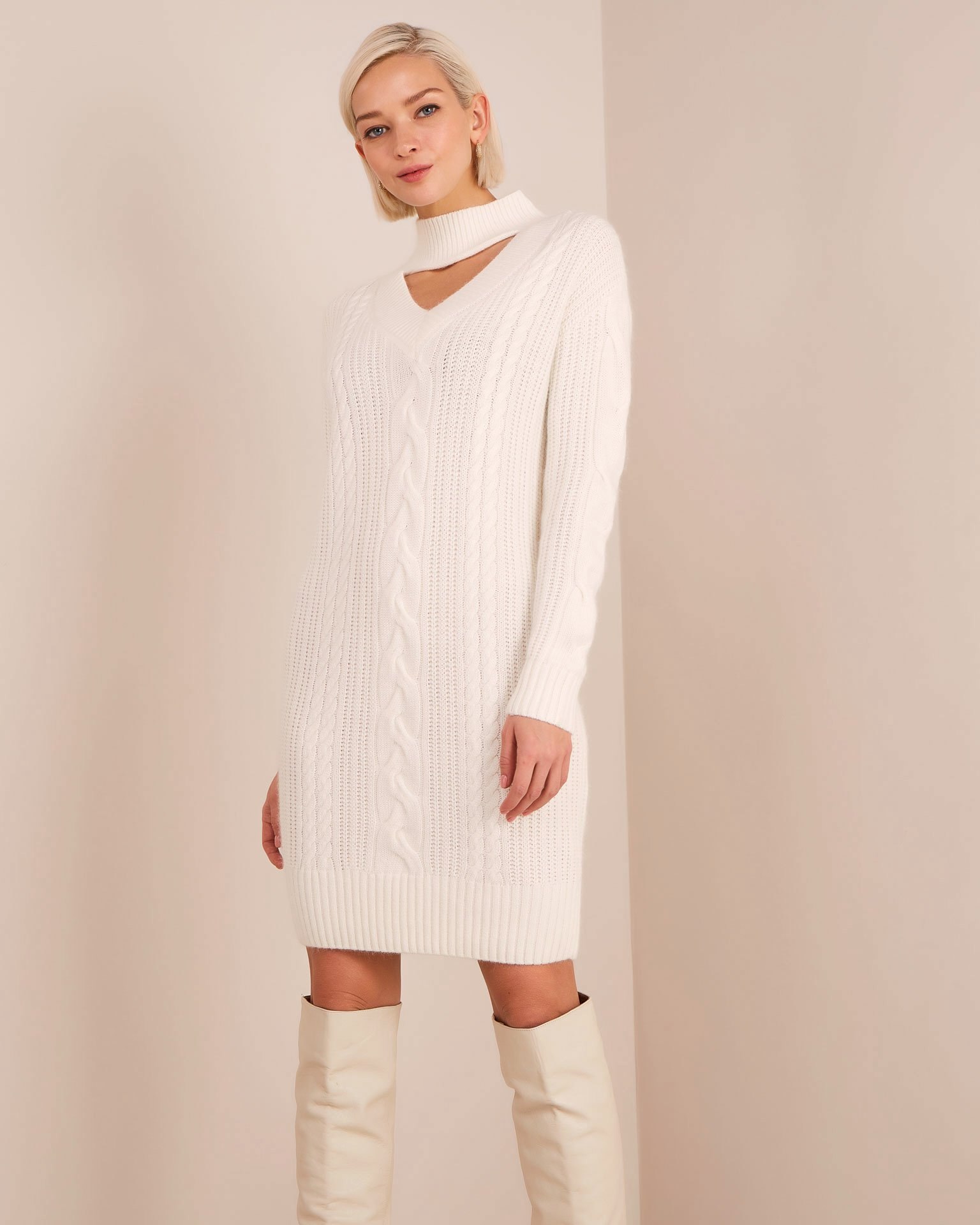Белое шерстяное платье