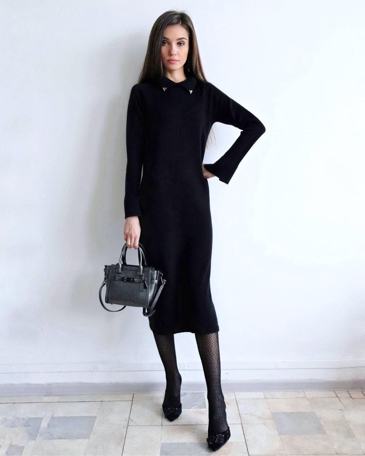 Длинное шерстяное платье