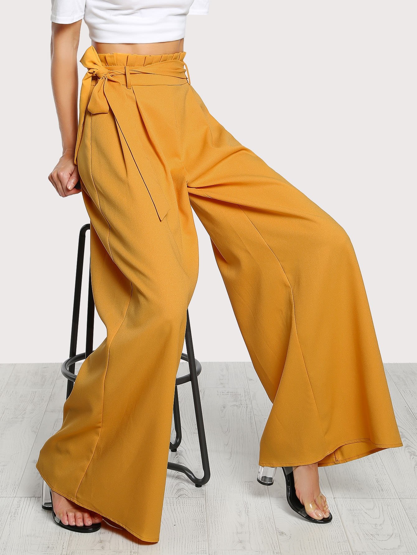 Широкие брюки палаццо с высокой талией