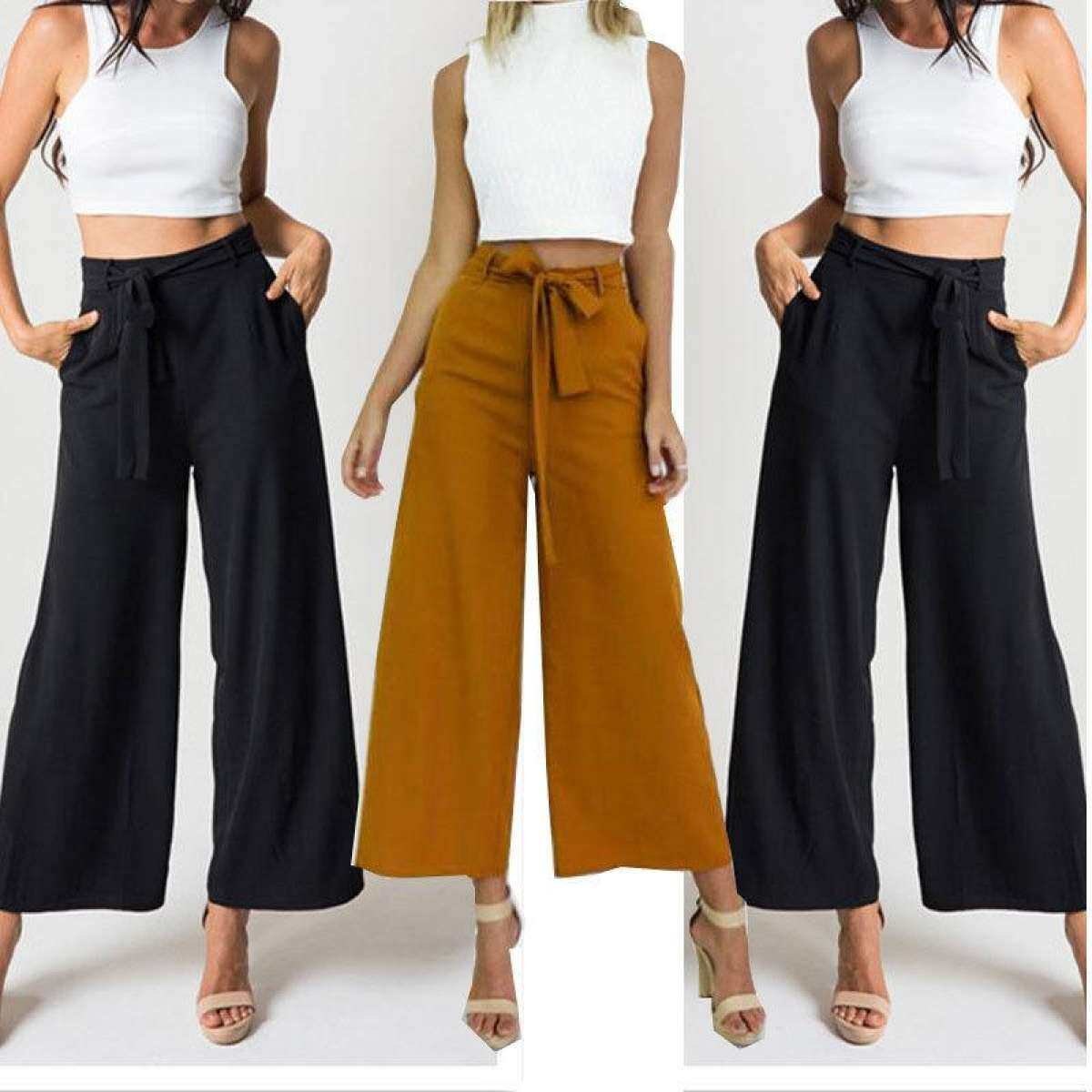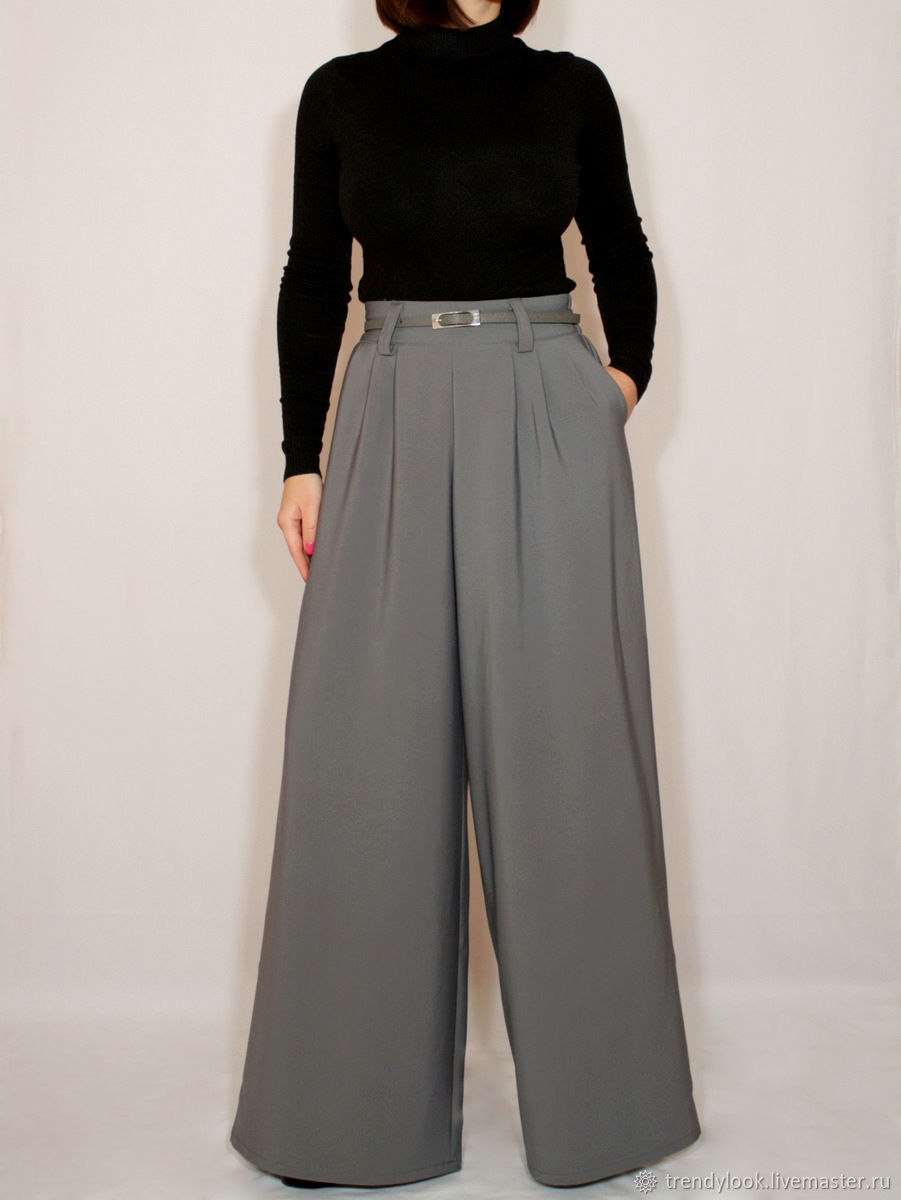 Высокие брюки женские широкие