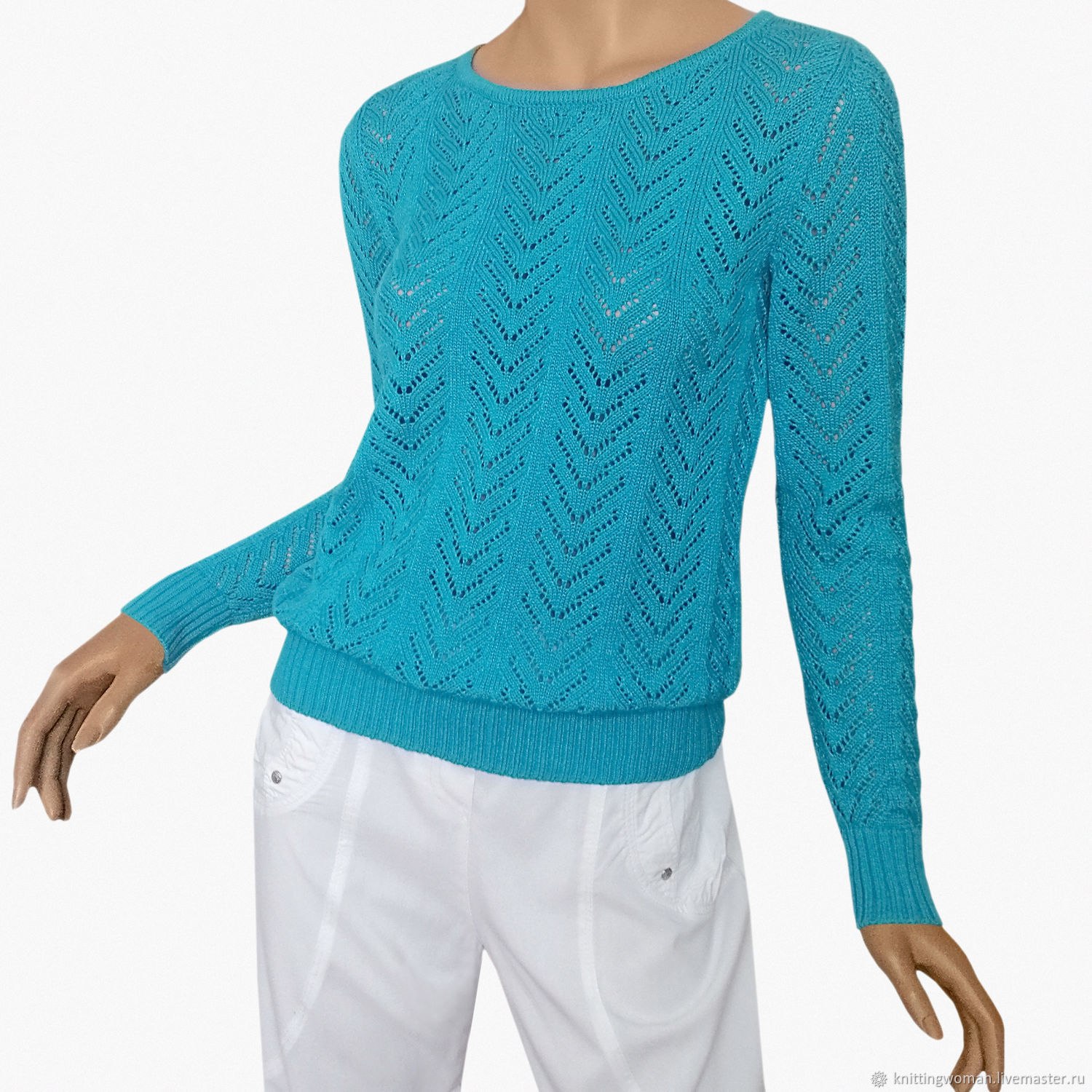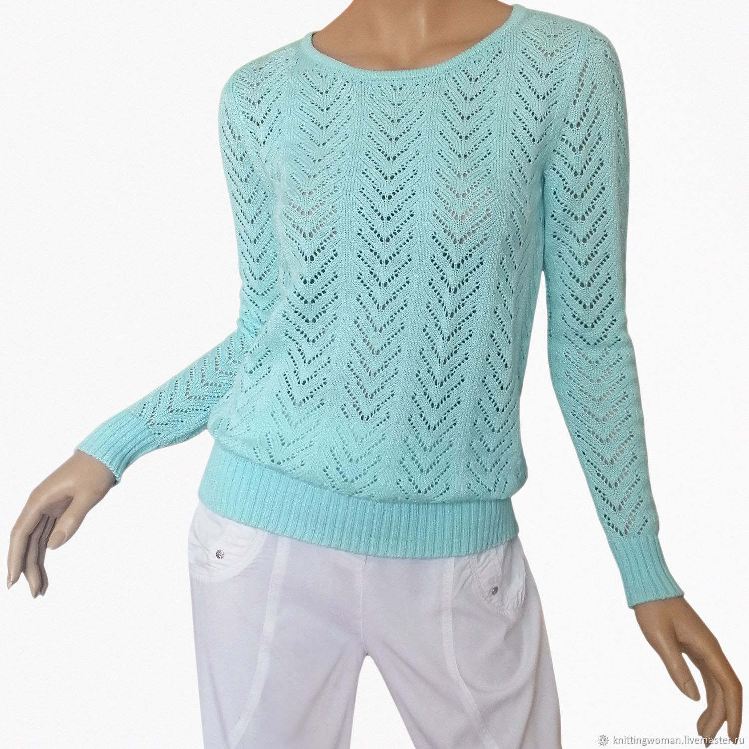 Голубой ажурный джемпер