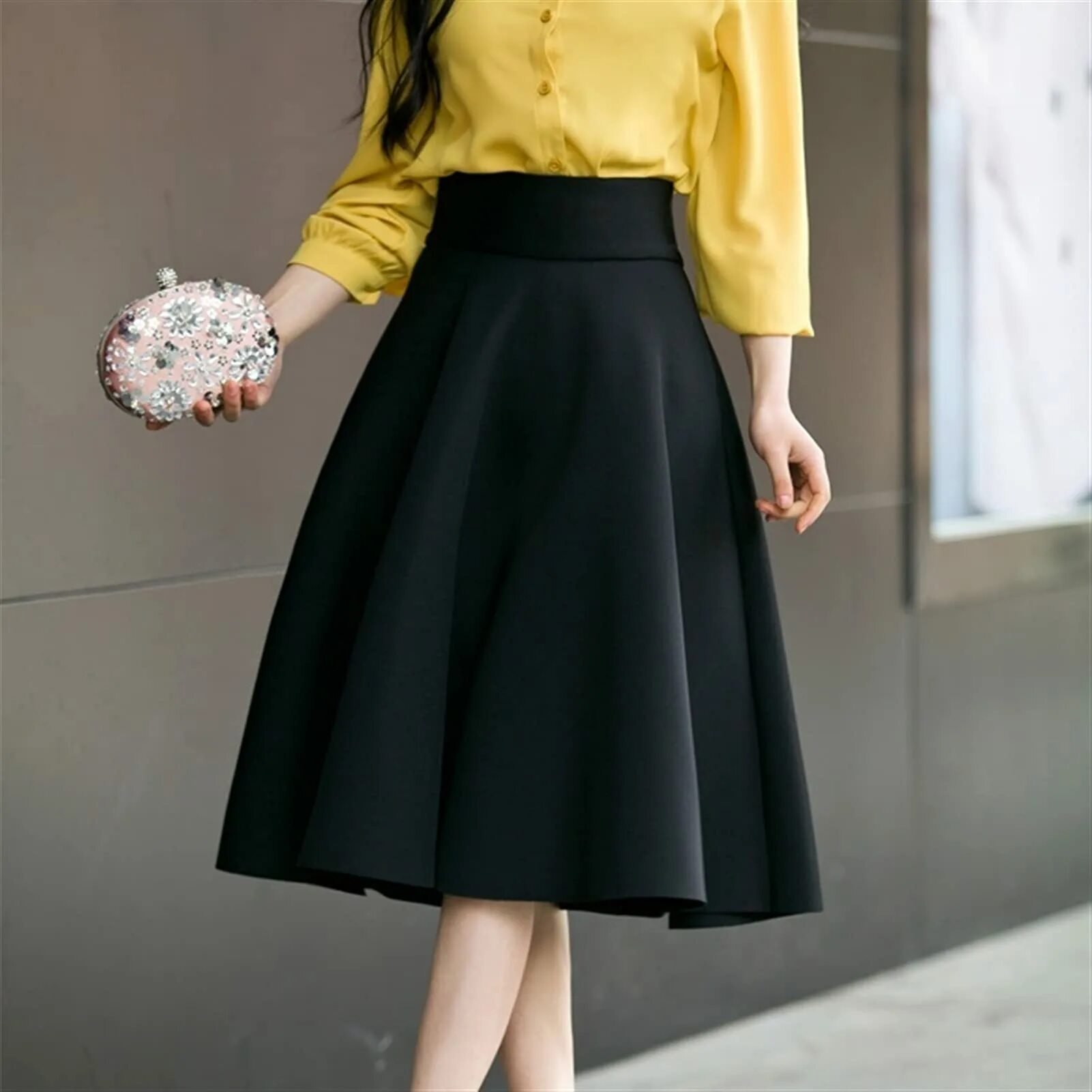 Чёрная юбка с завышенной талией