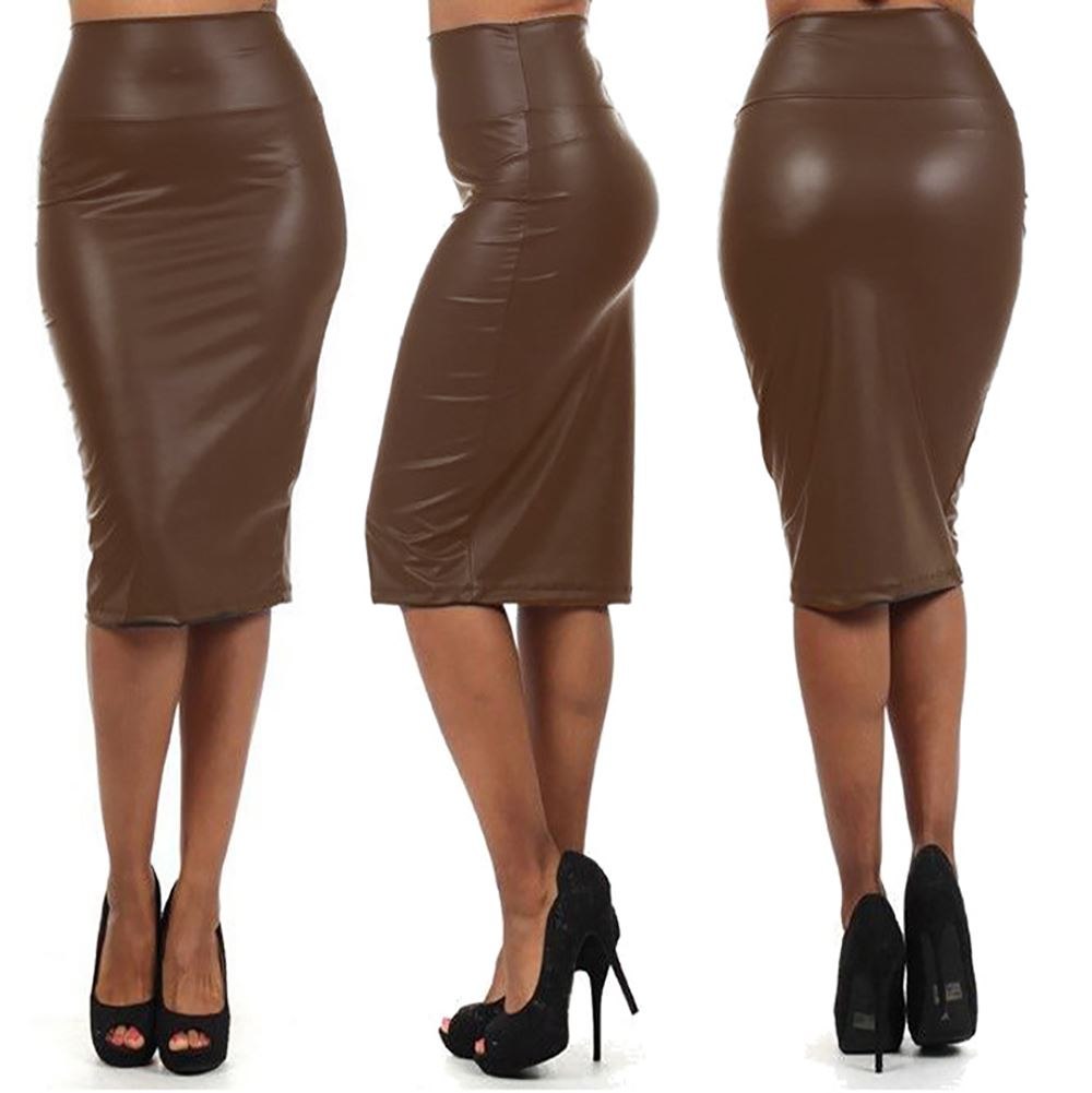 Кожаная юбка карандаш с завышенной талией