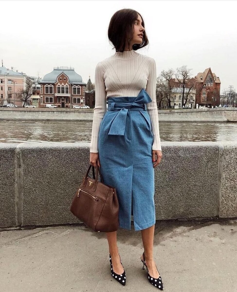 Джинсовая юбка миди стрит стайл