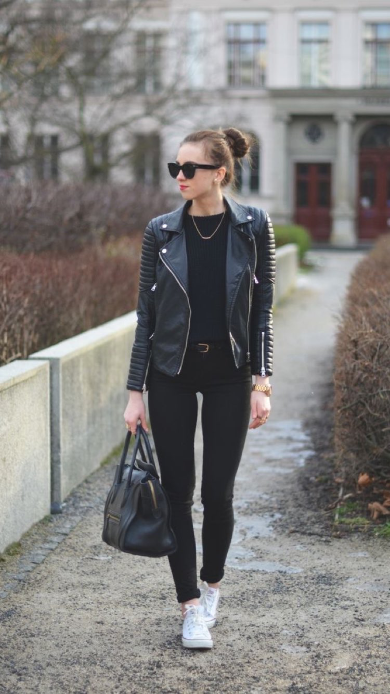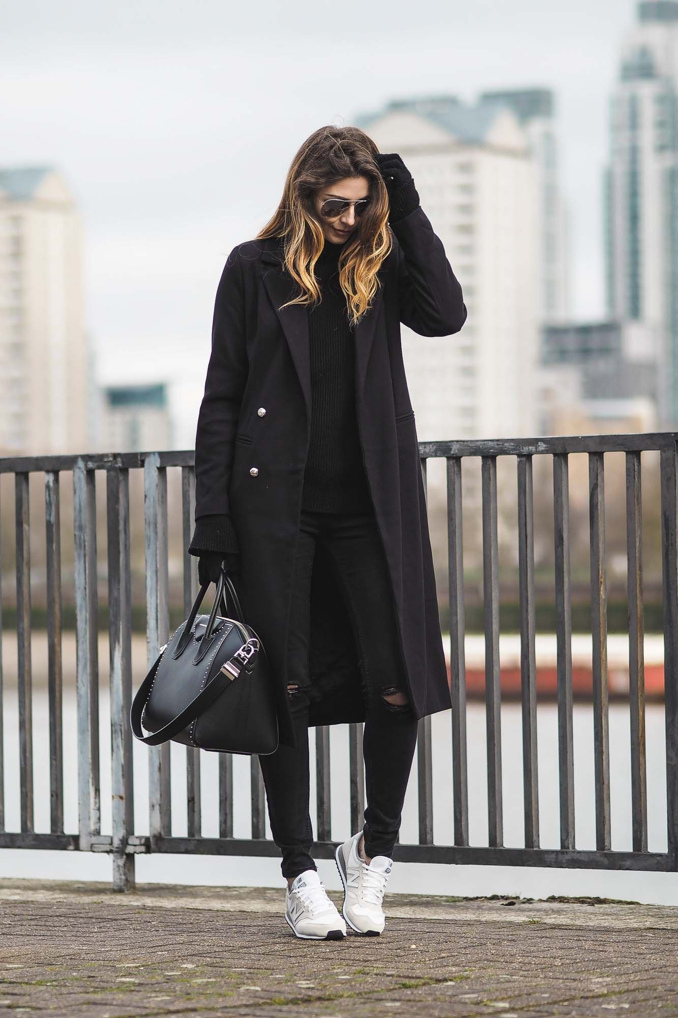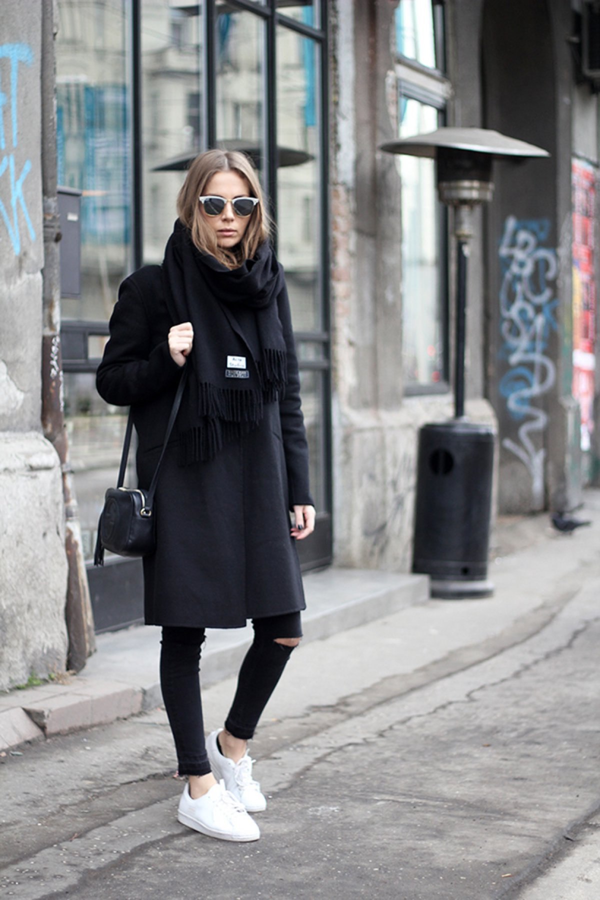 Пальто с белыми кедами