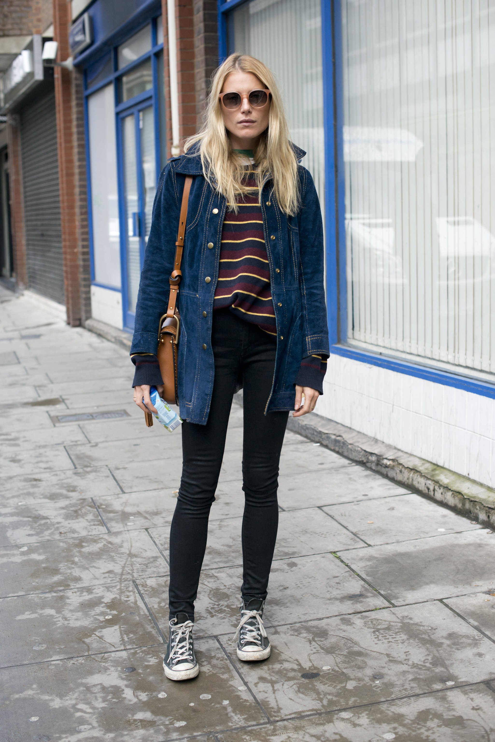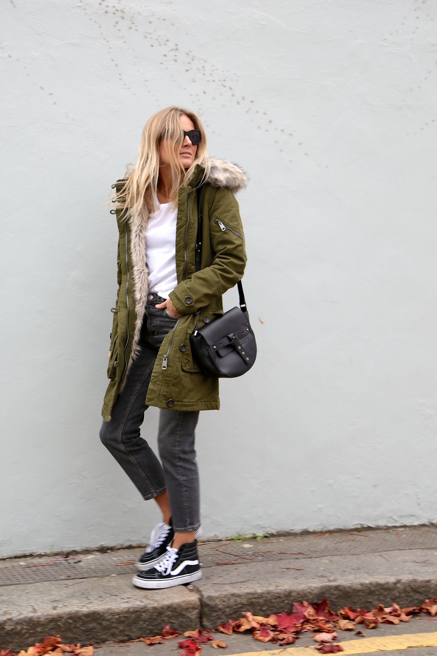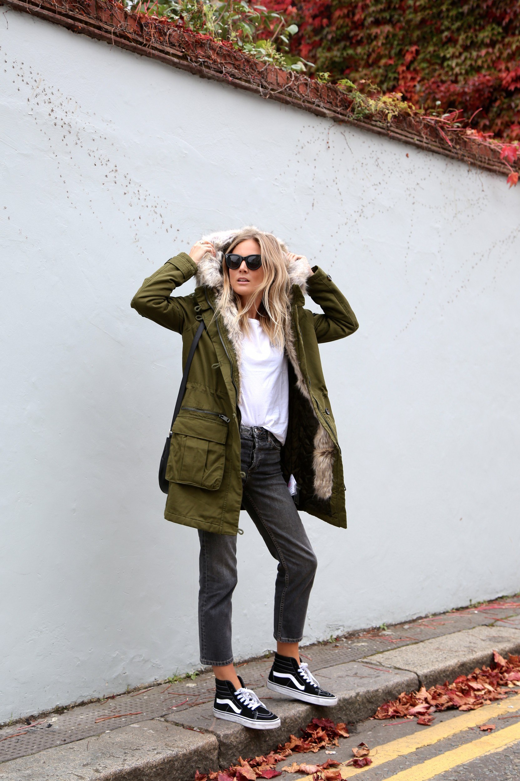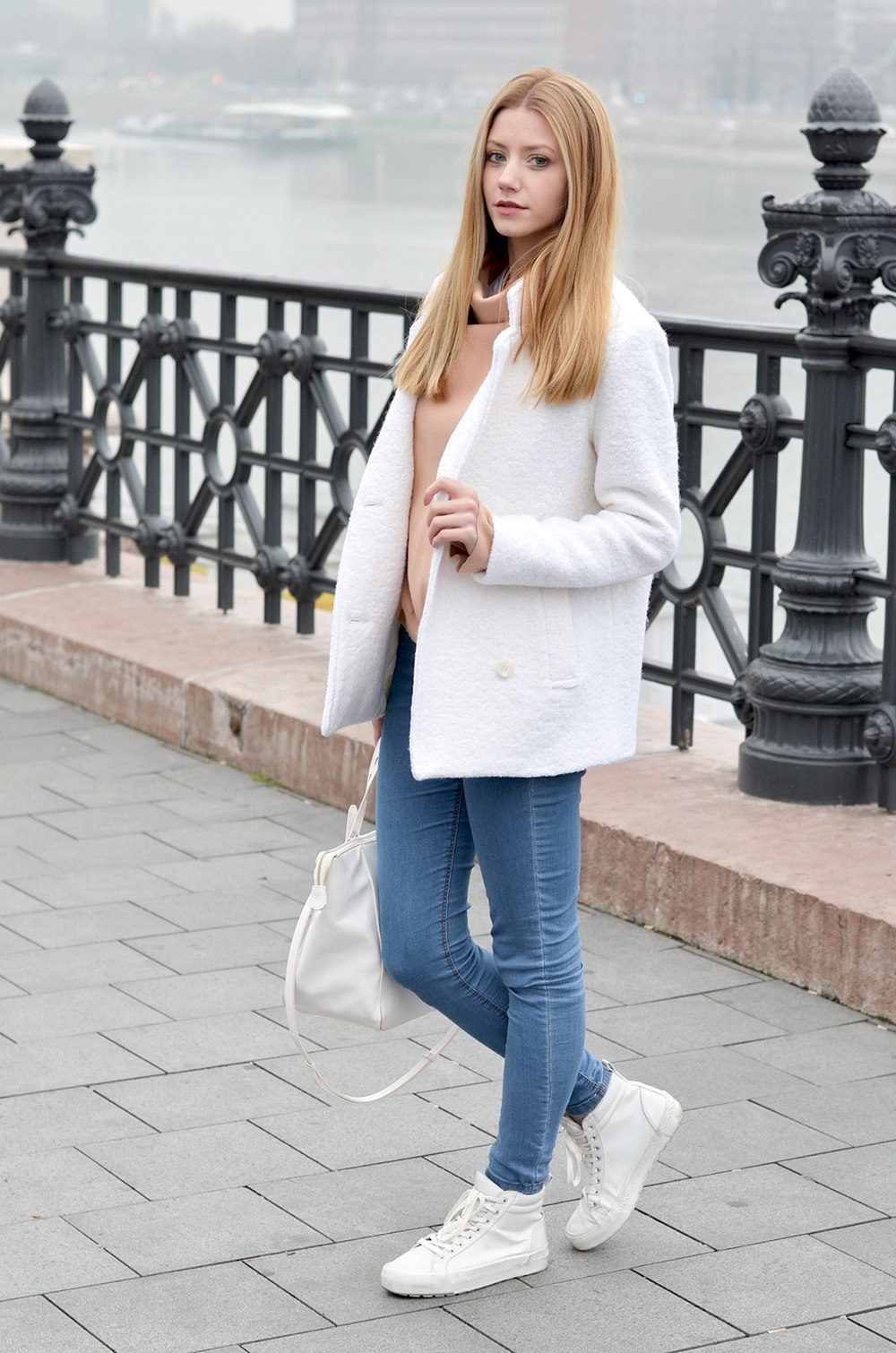 Пальто с белыми кедами