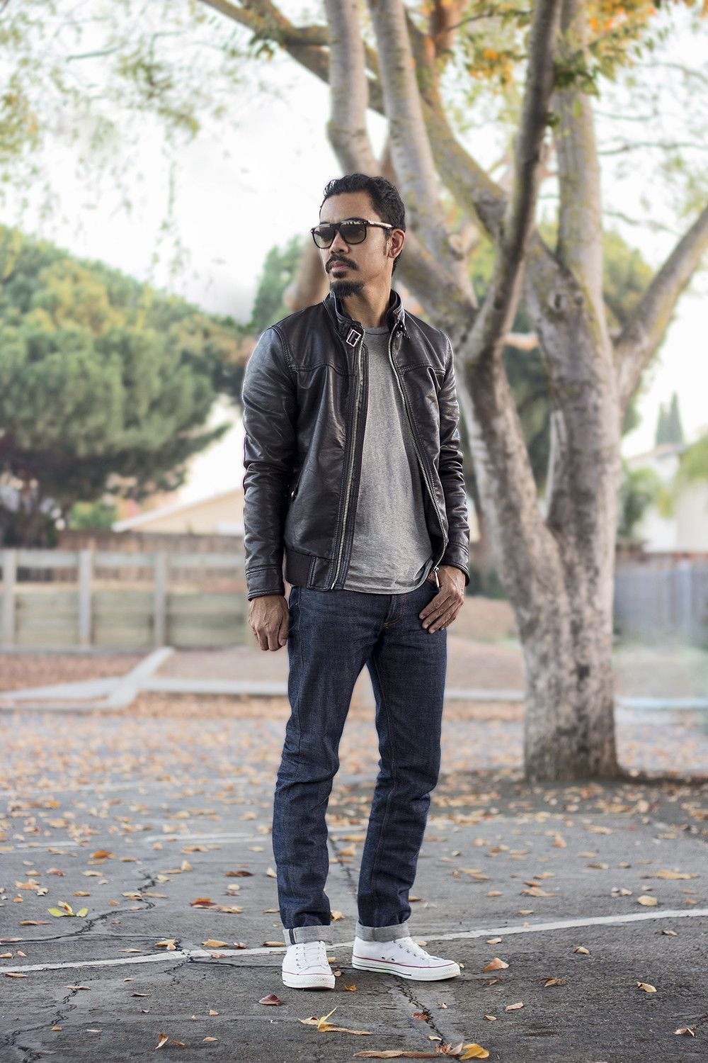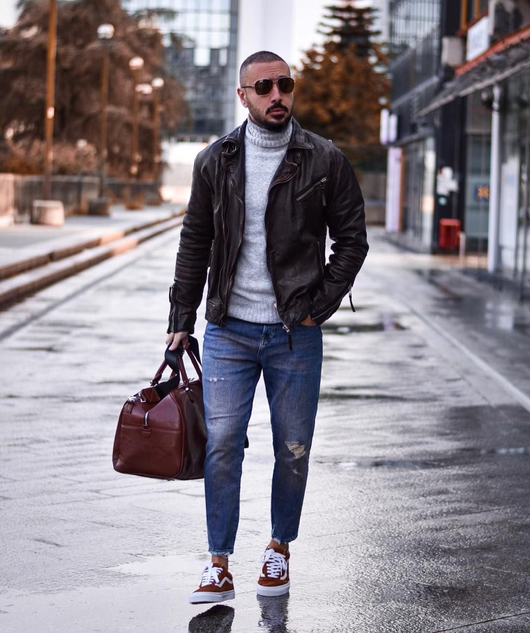 Джинсы и кожаная куртка мужская