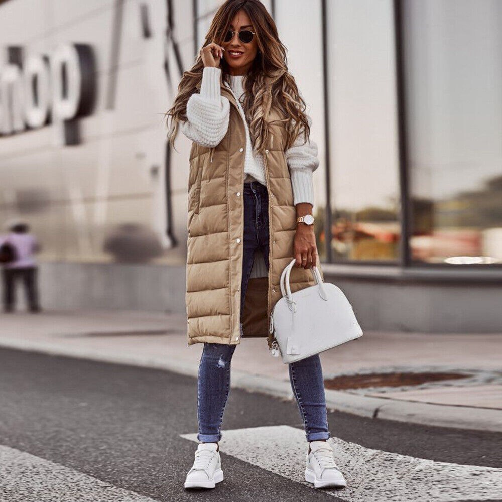 Длинный безрукавка женский пуховик
