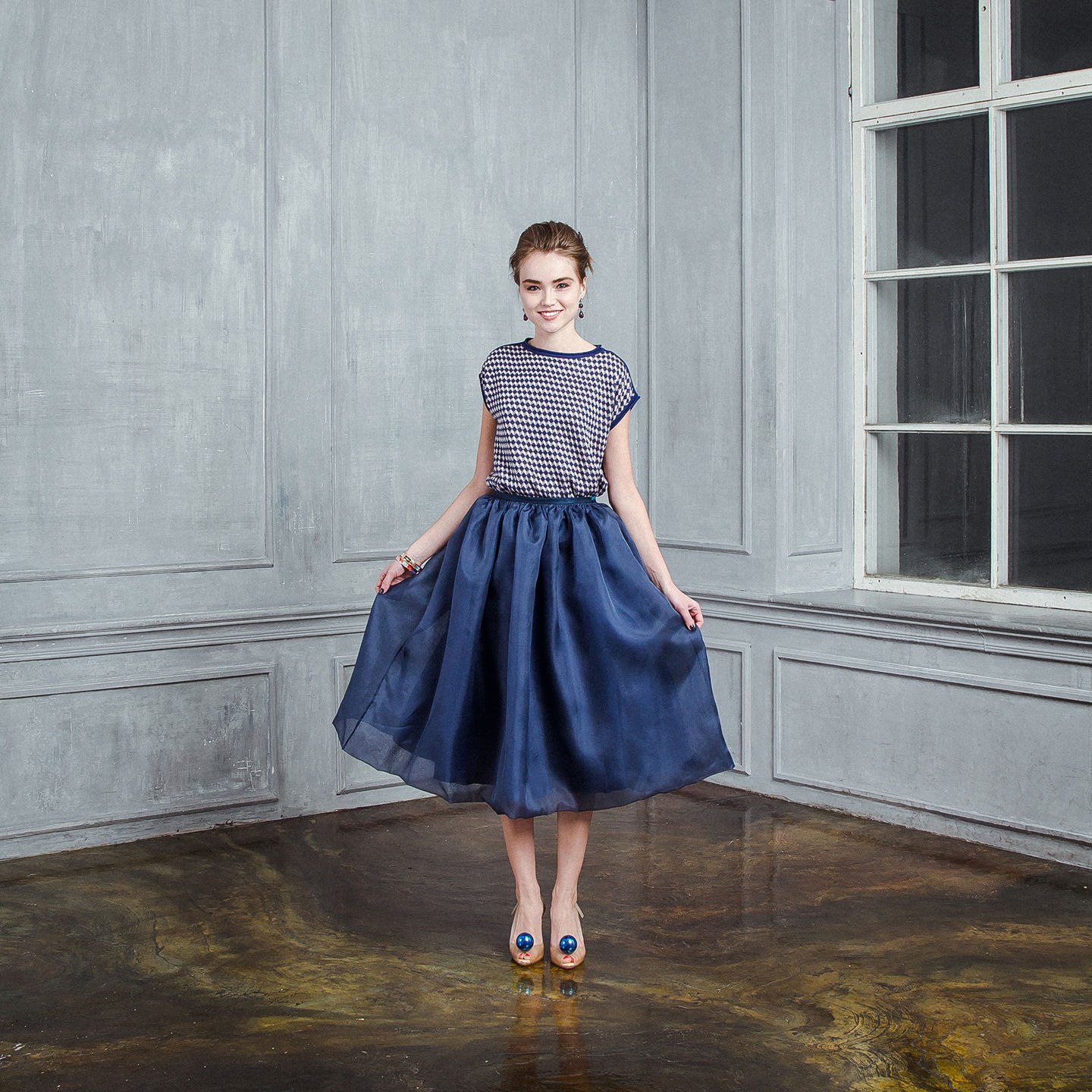 Синяя пышная юбка
