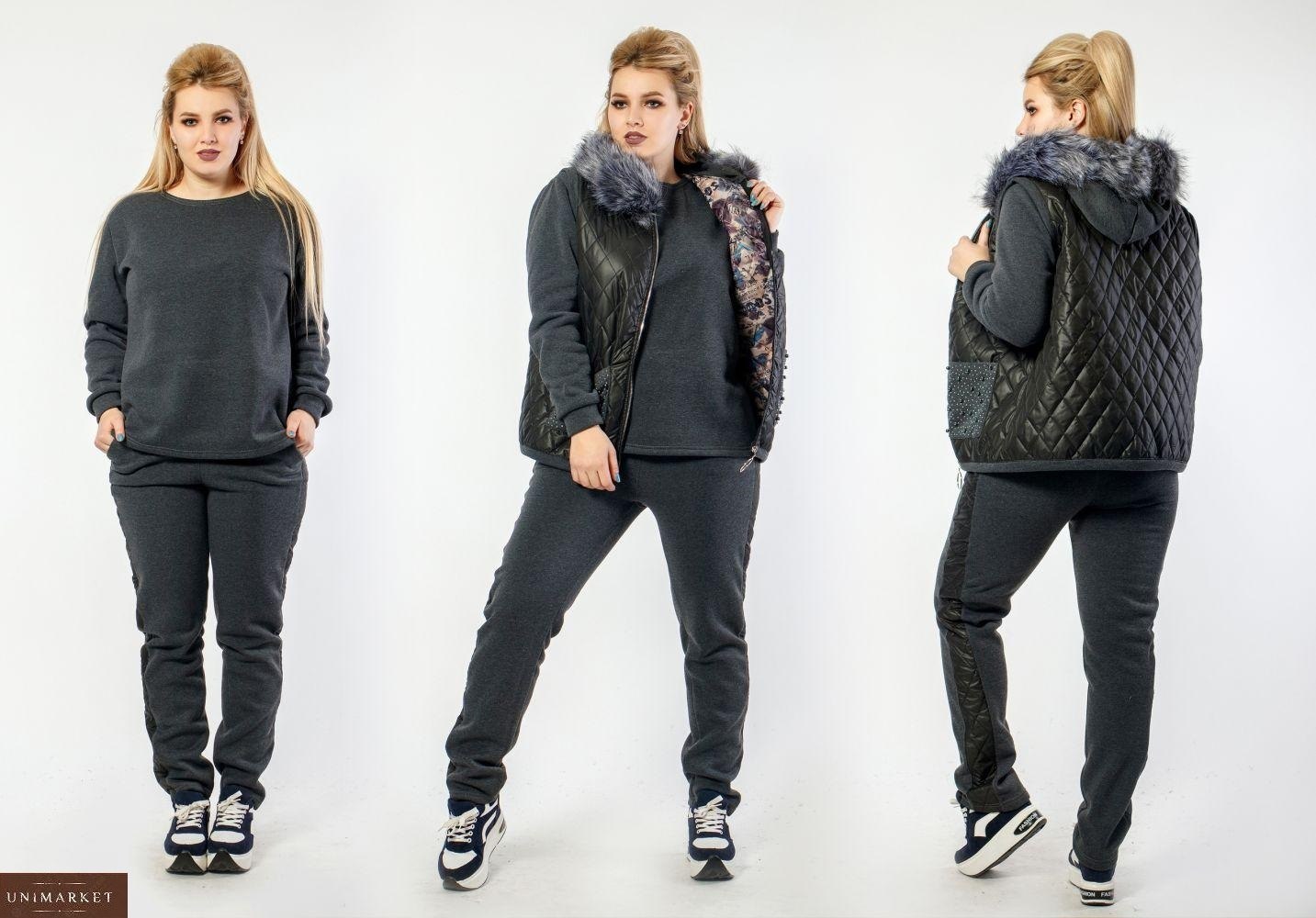 Теплый костюм тройка с жилеткой женский