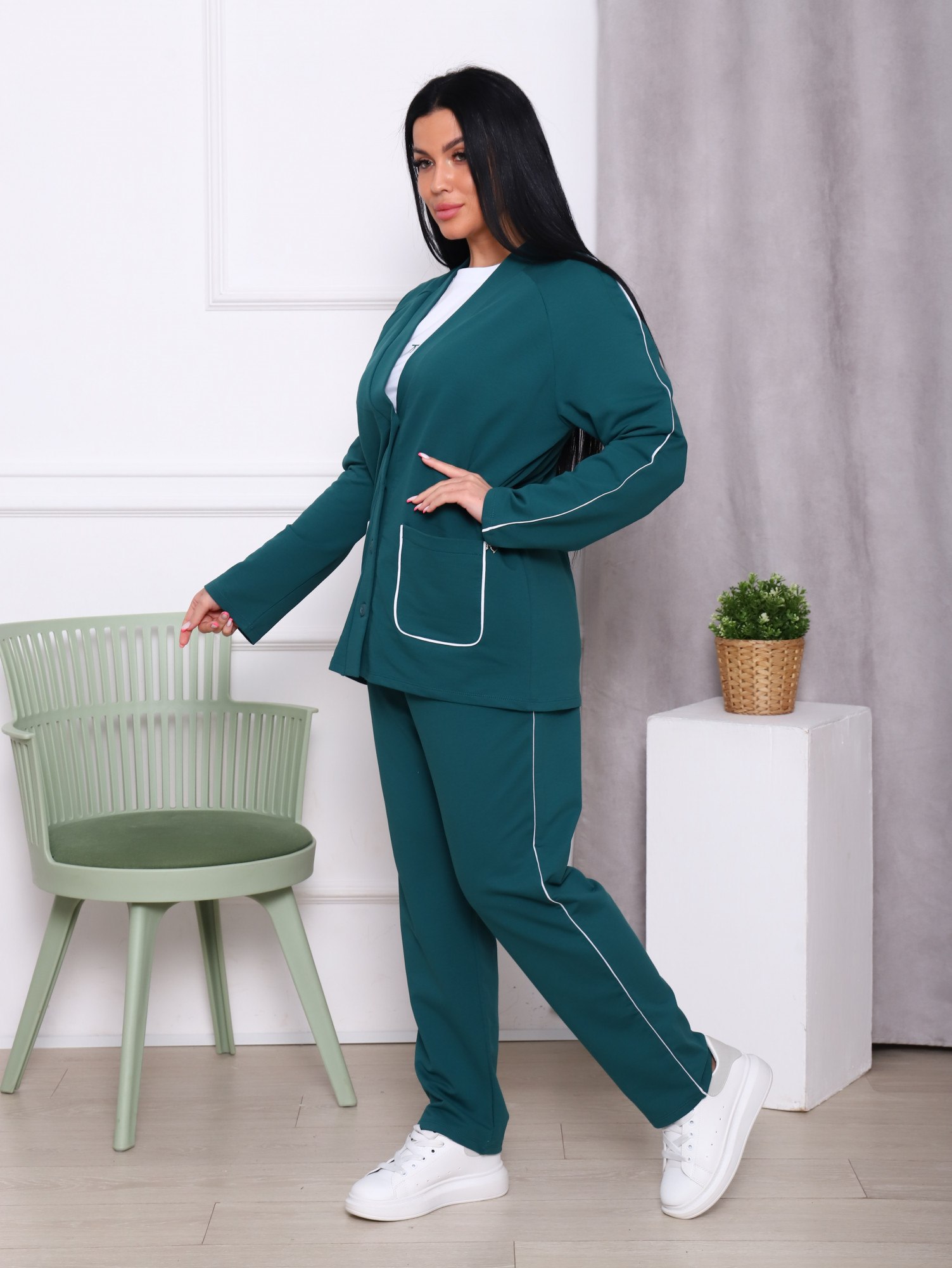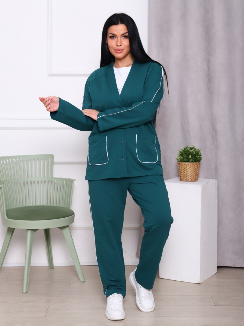 Зеленый костюм тройка женский