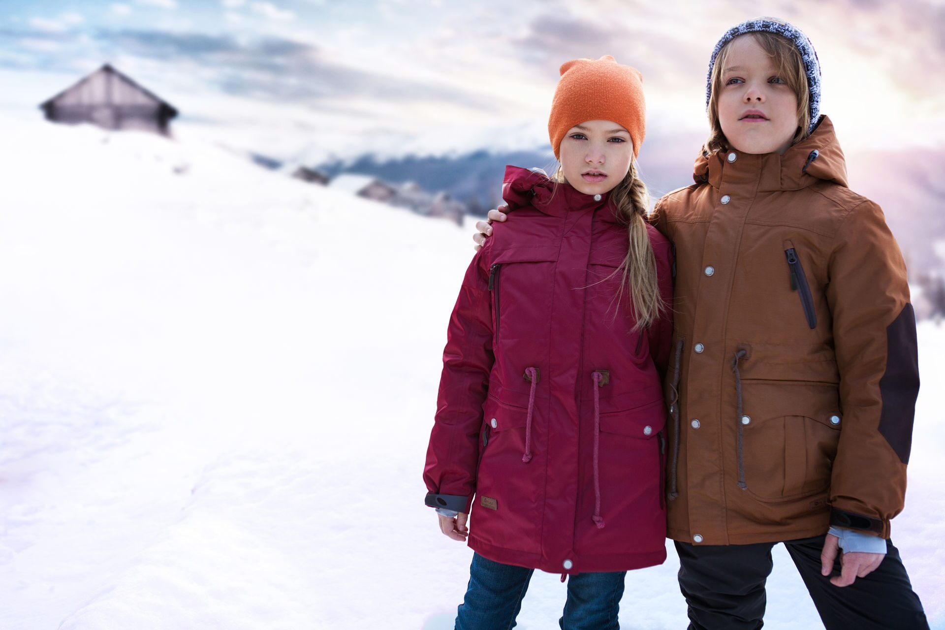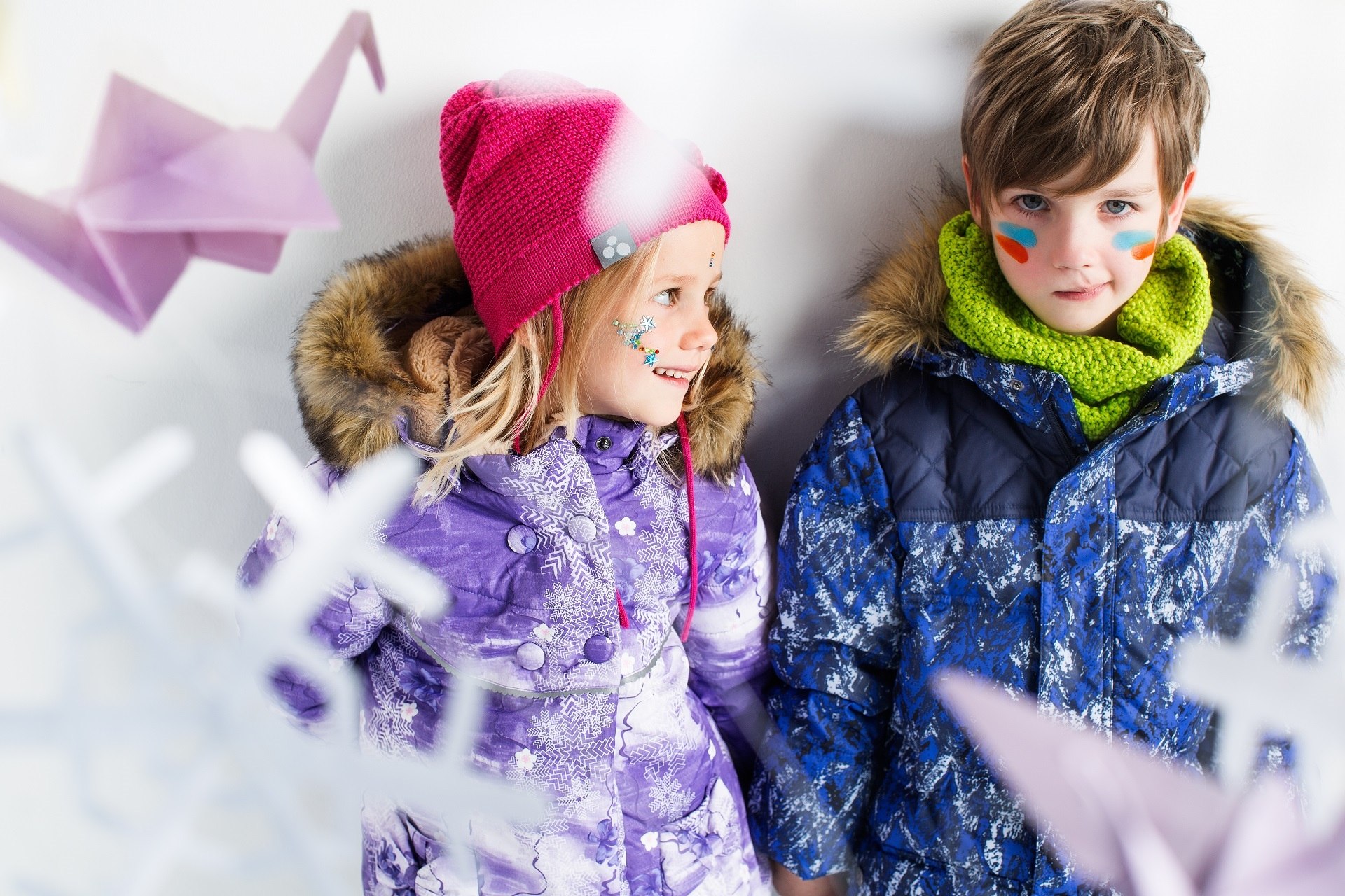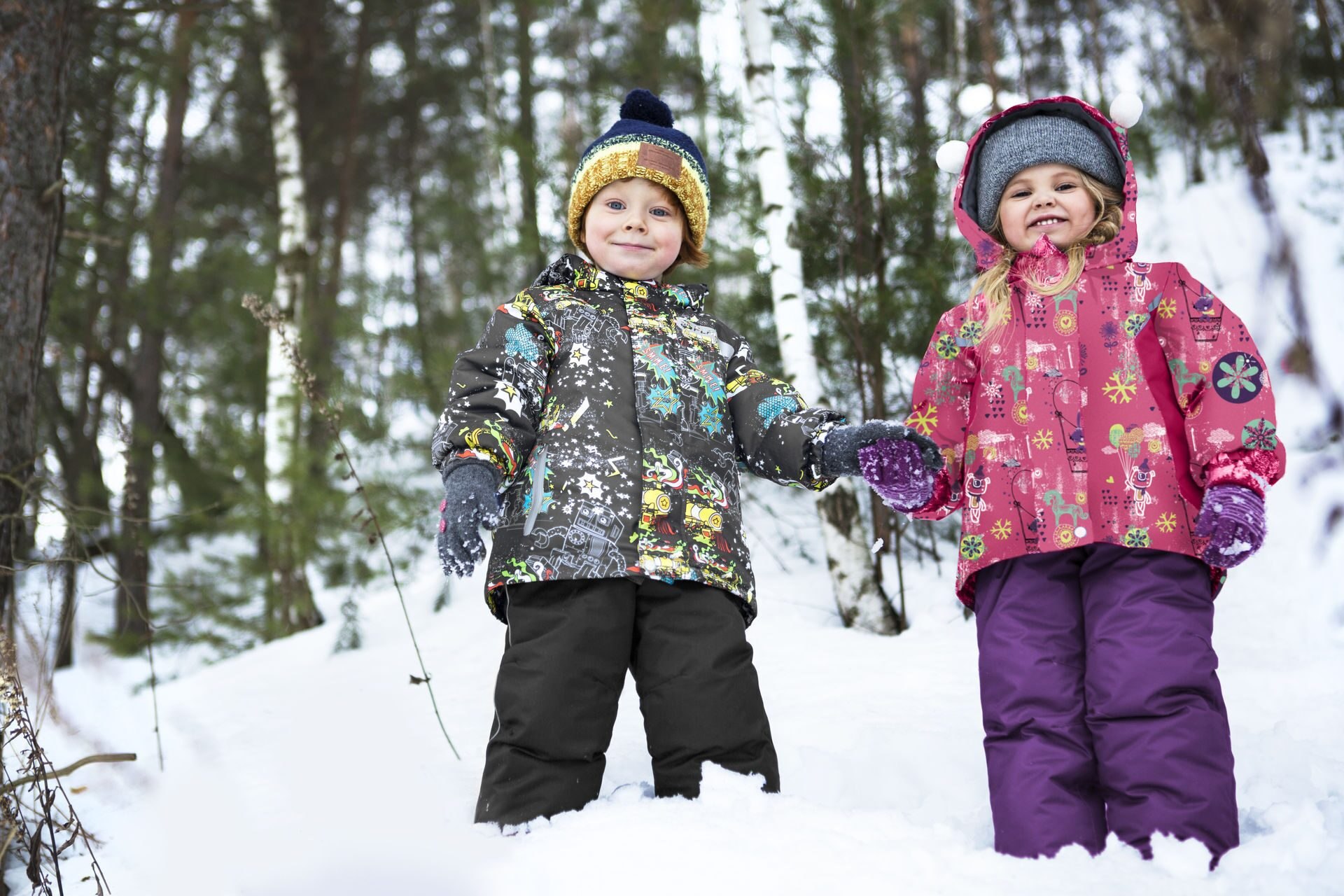 Дети в зимней одежде батик