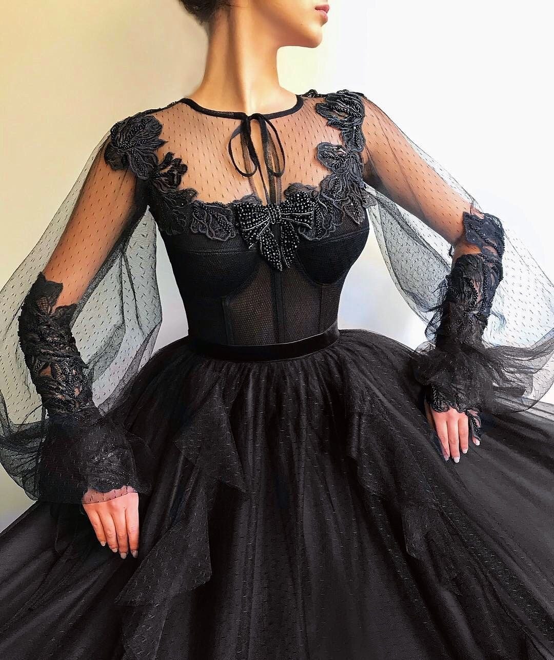 Черное пышное платье