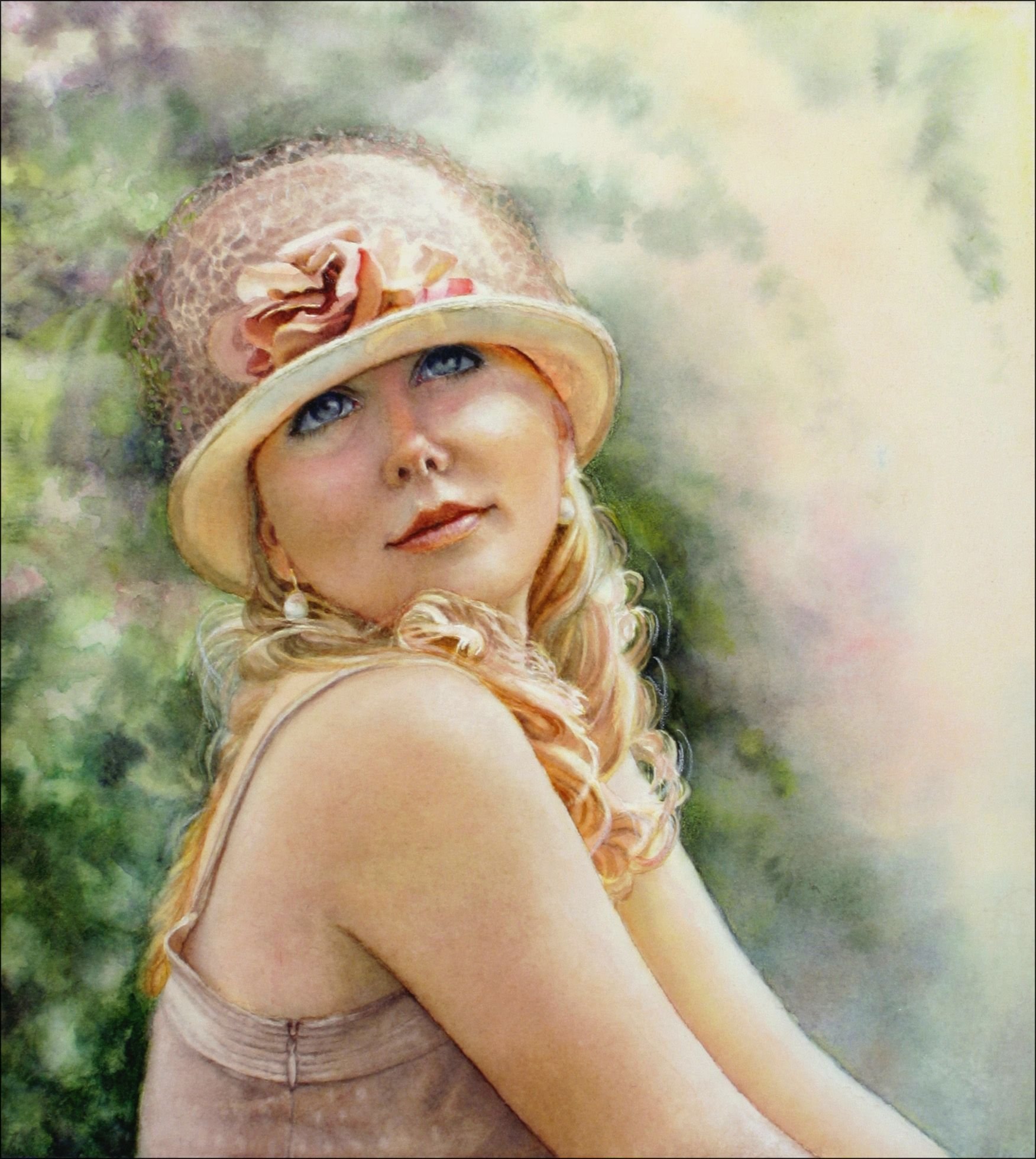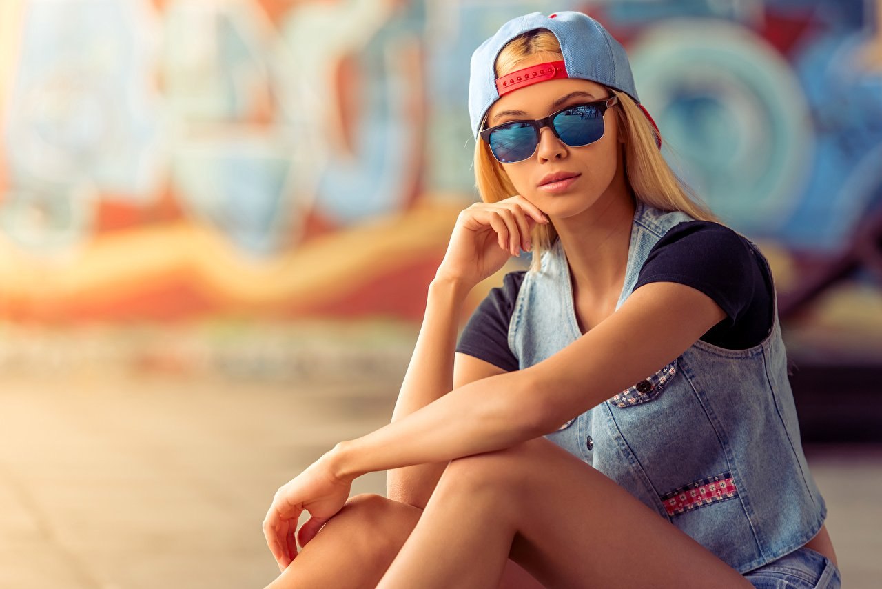 Арт девушка в кепке блондинка