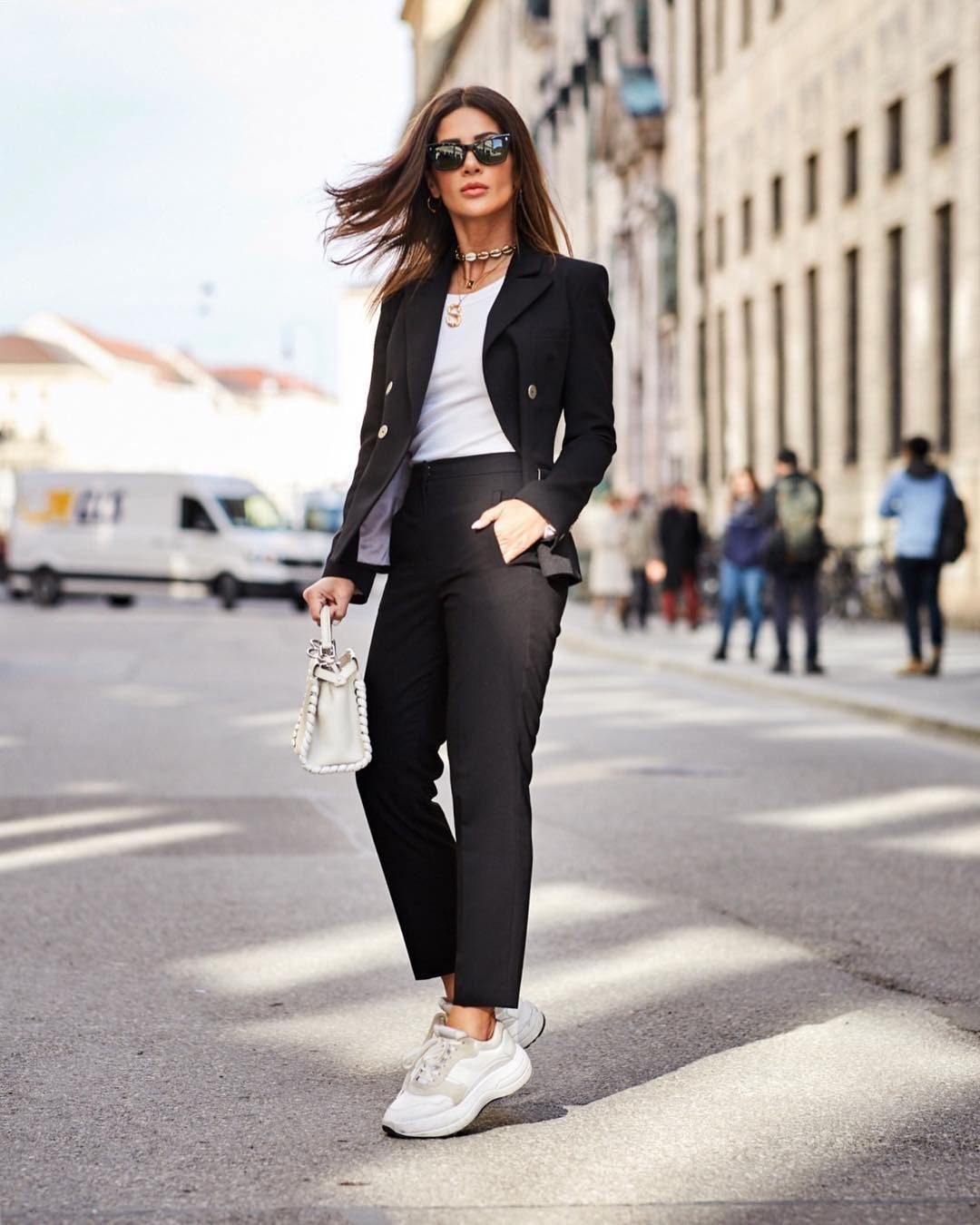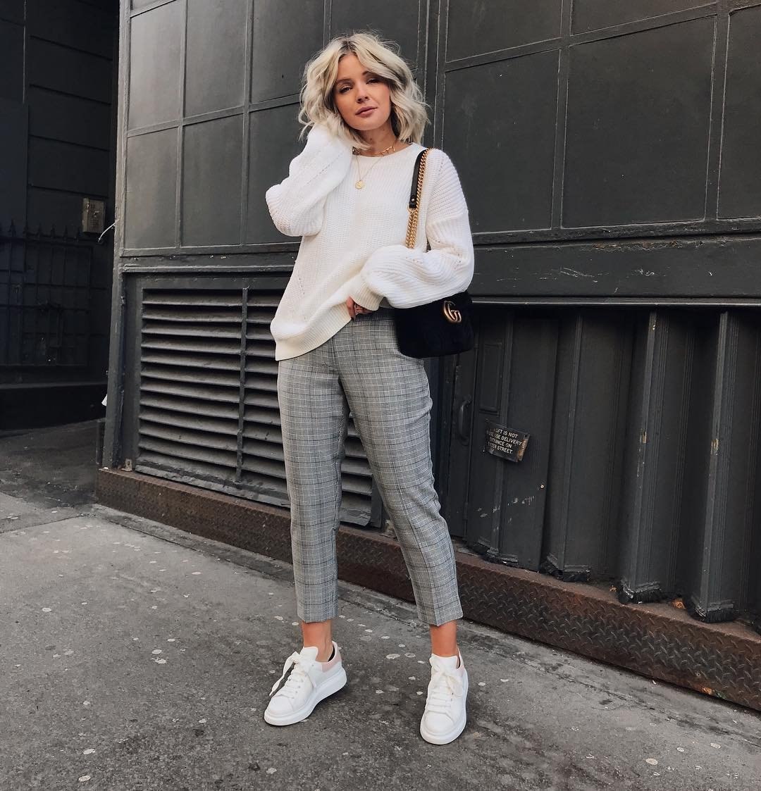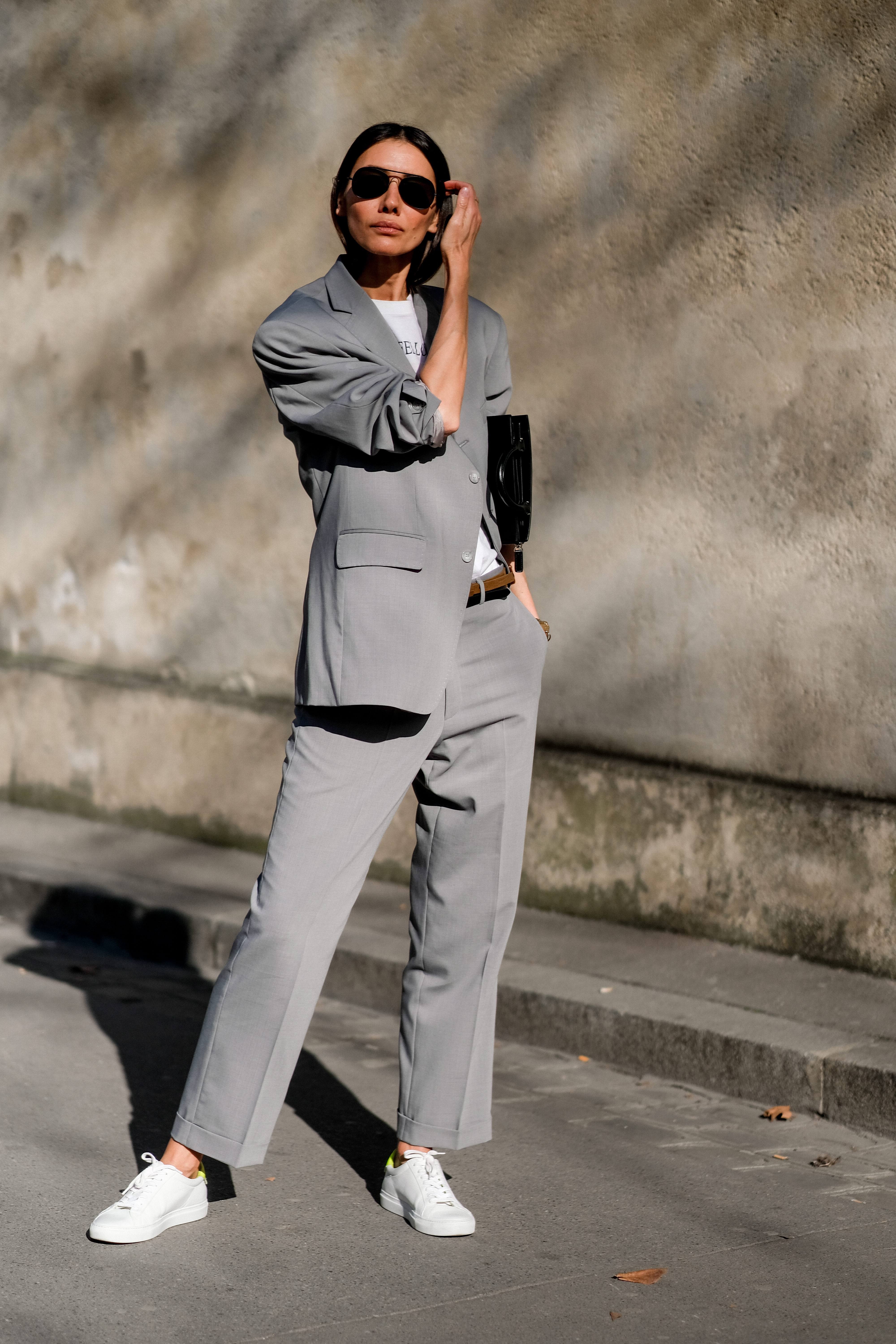 Брючный костюм и кроссовки