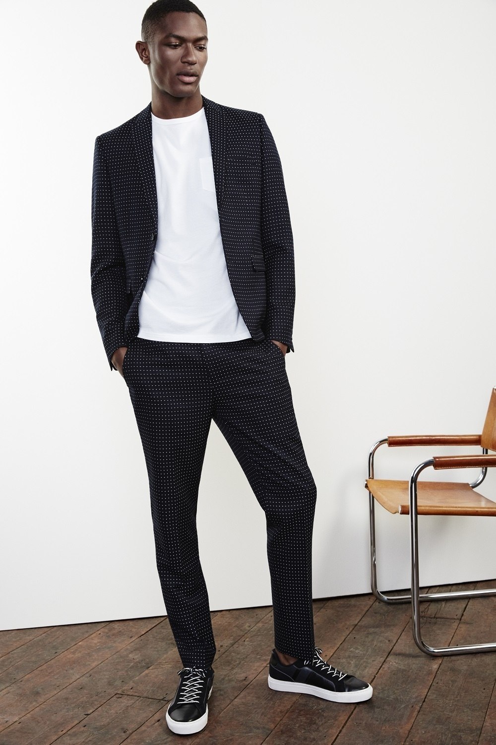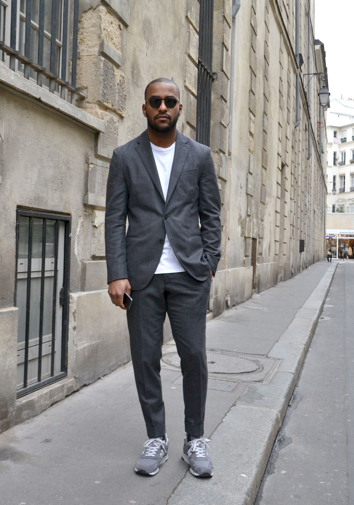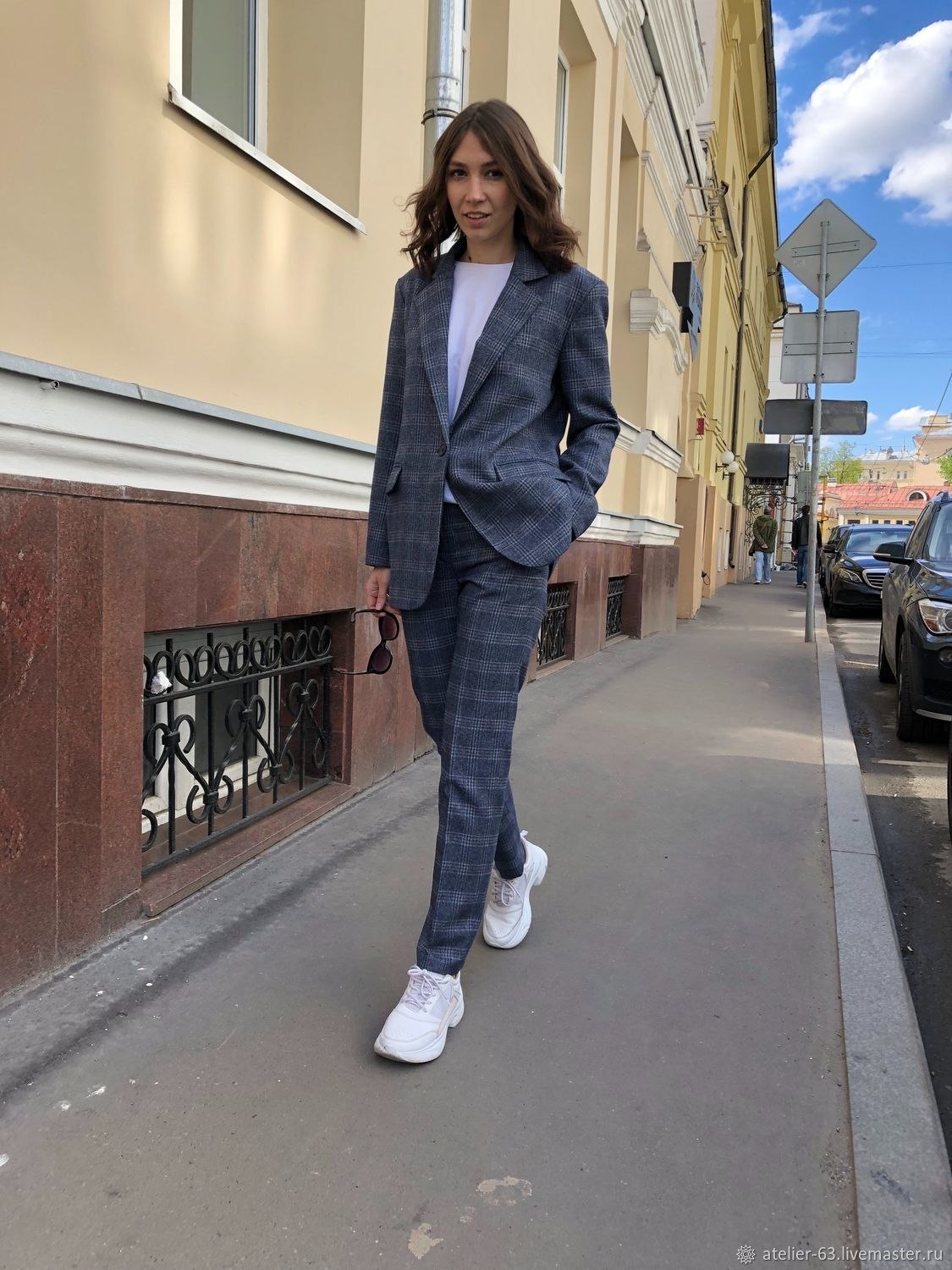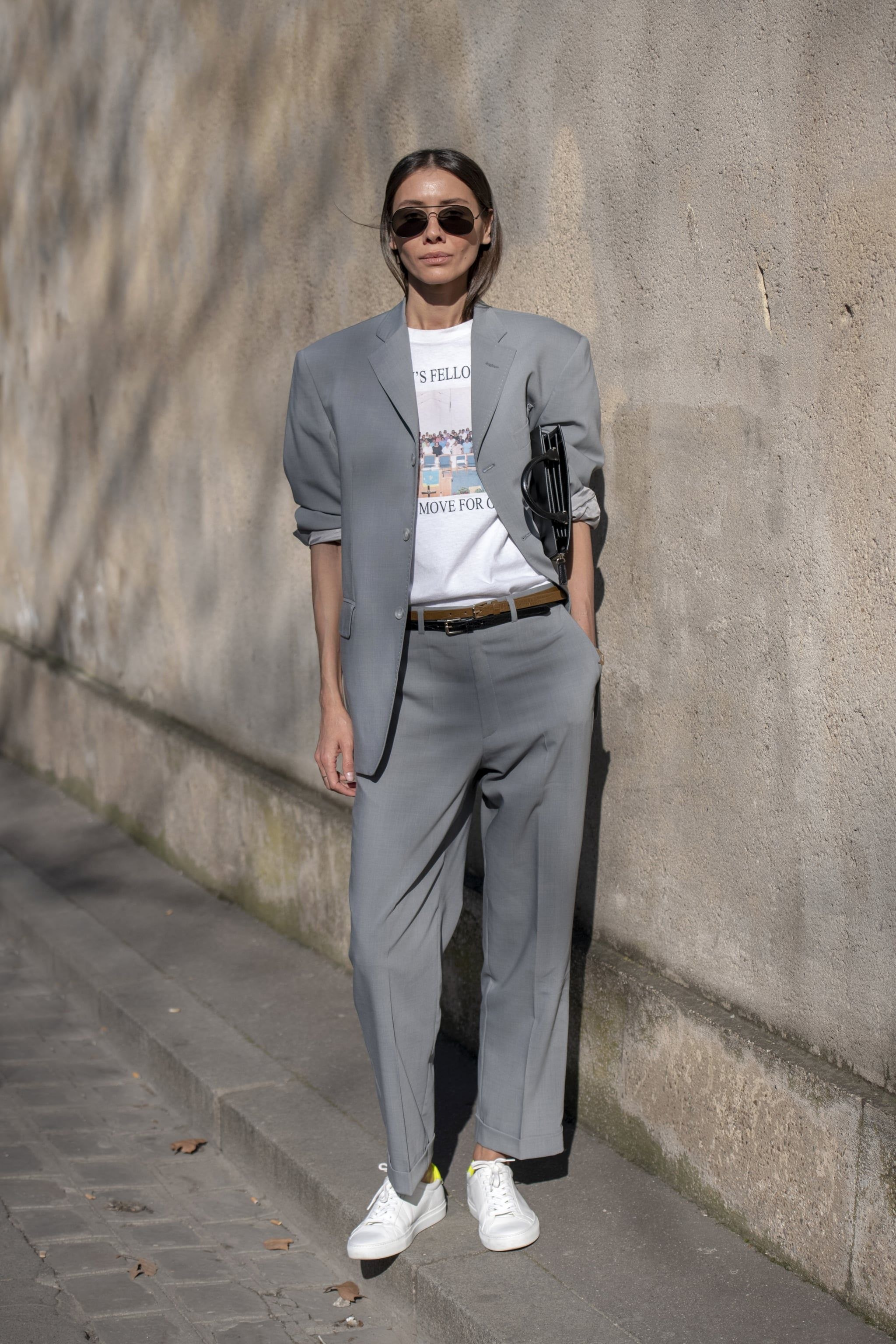 Брючный костюм и кроссовки
