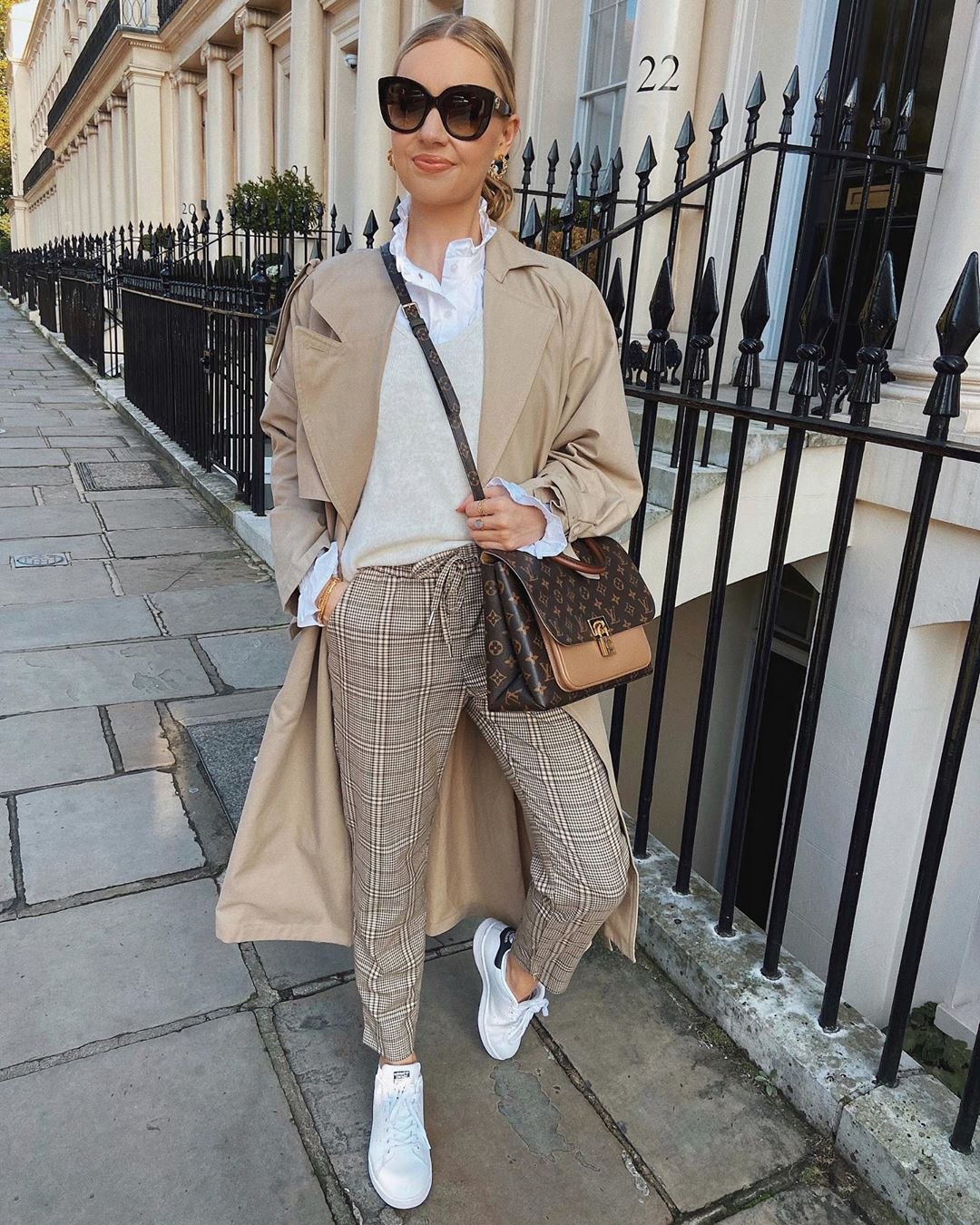 Бежевые брюки с кроссовками