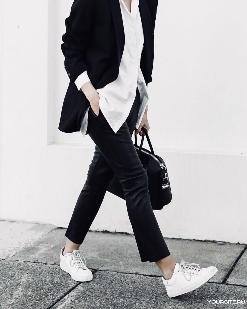 Белые кроссовки с черными штанами