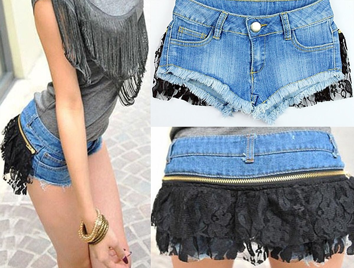 Шорты джинсовые женские с кружевом
