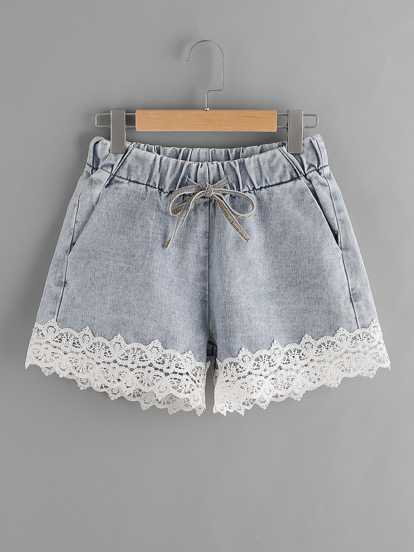 Джинсовые шорты с кружевной отделкой